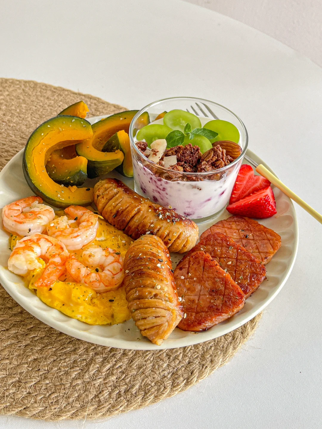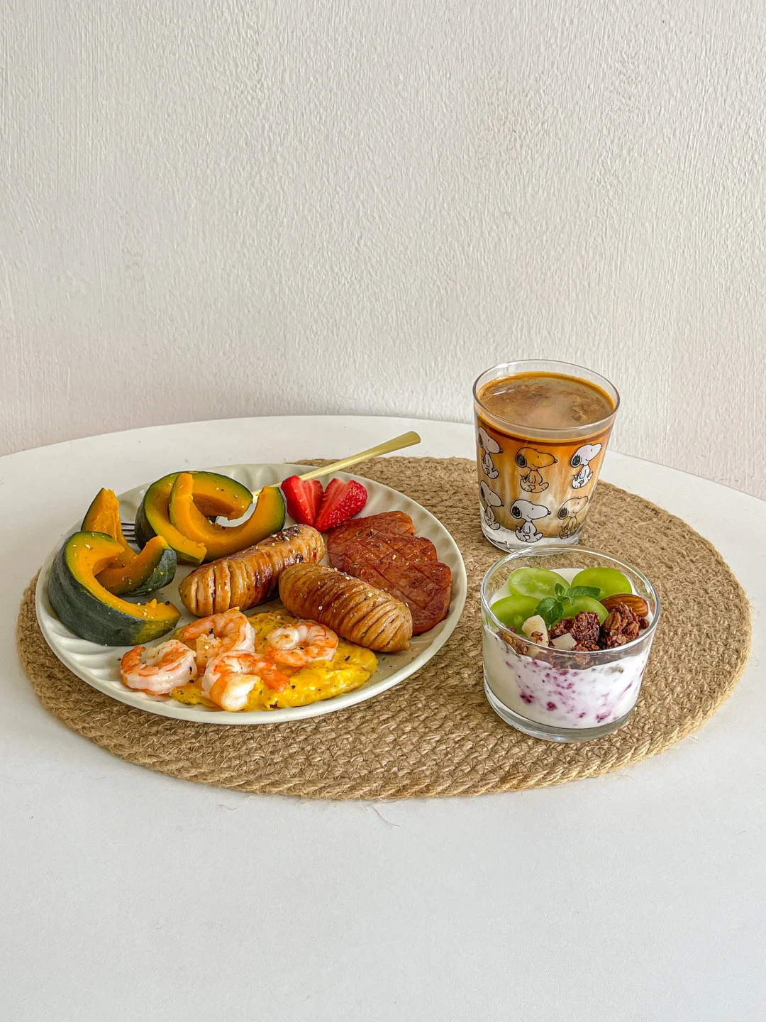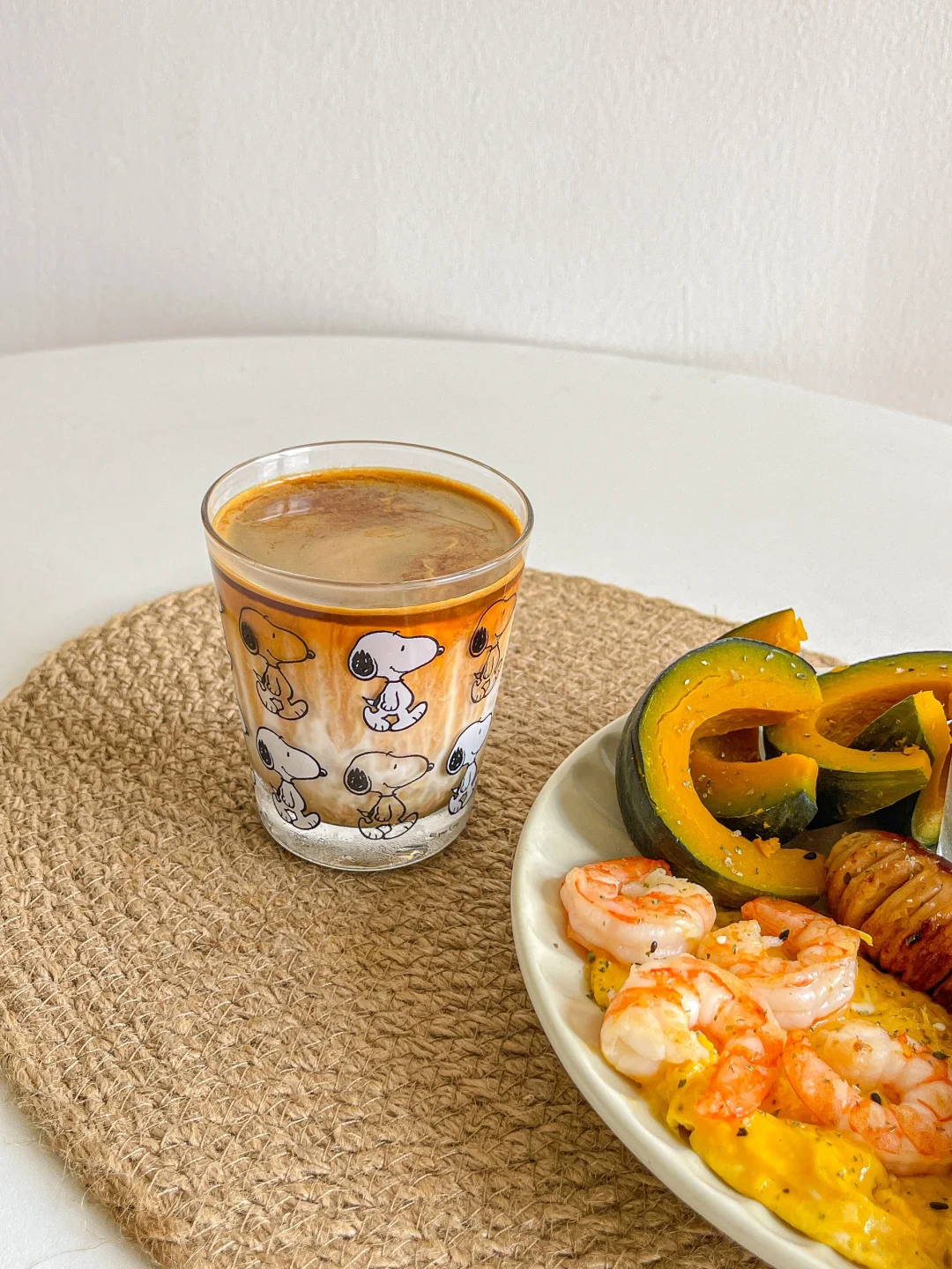一人食brunch🍤虾仁滑蛋贝贝南瓜🥣酸奶杯