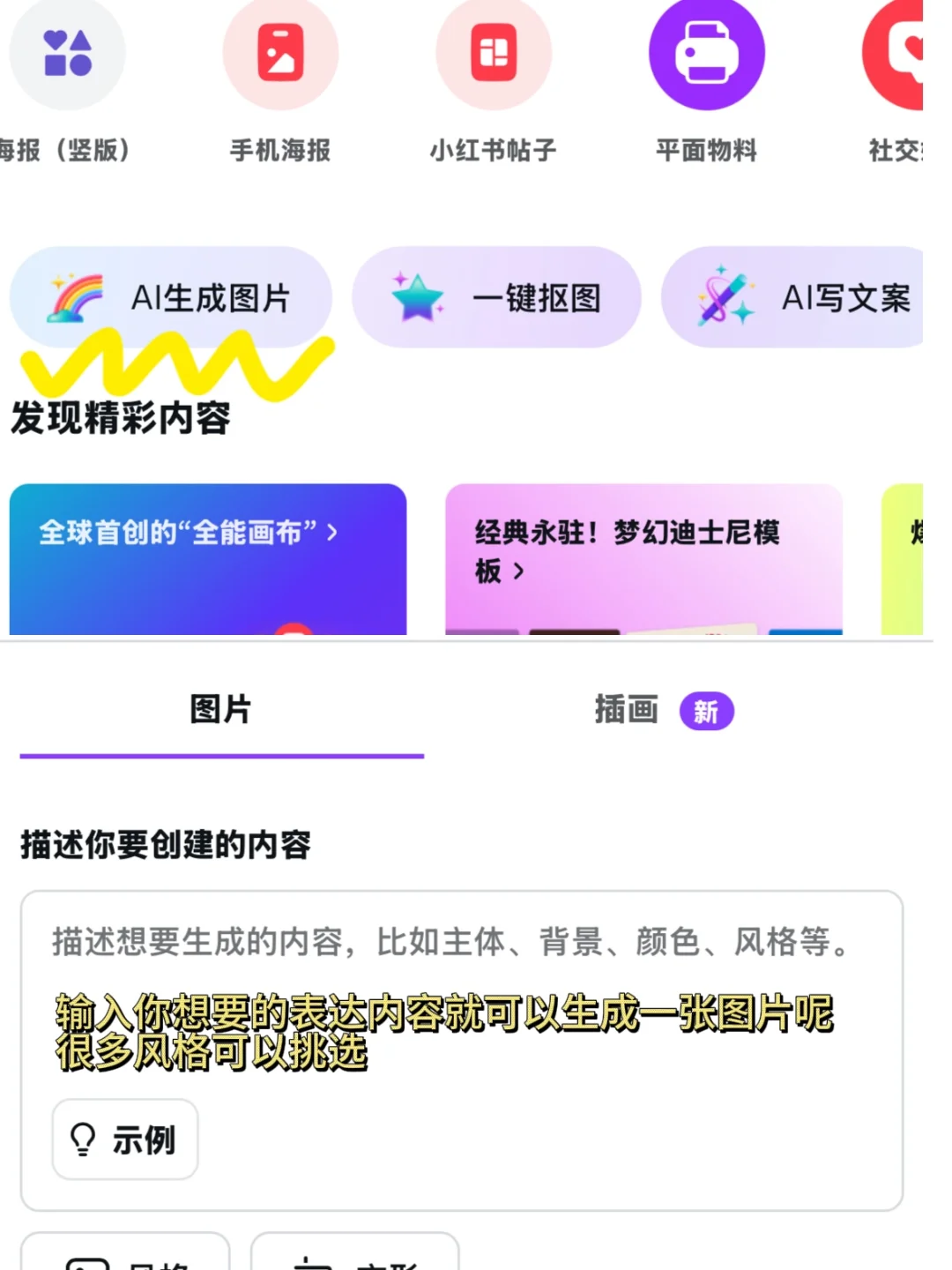 超多风格的模板可以免费使用,ins风、可爱风等多种风格任意选择,真的太懂ENFP!AI生图功能可以根据指令生成对应的图片
