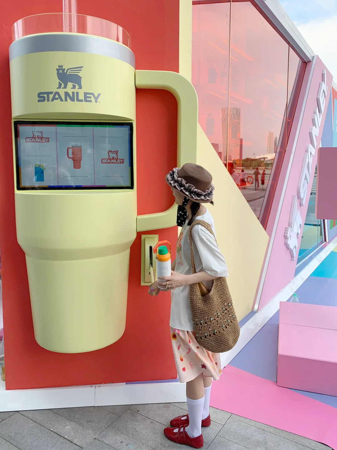 好喜欢来这个西岸梦中心!和朋友一眼就看到超大STANLEY水杯!和我的是同款哎😆好多巴胺的颜色! 这里还能diy随意搭配自己喜欢的颜色也太好玩了吧,以后出门都可以按照自己的穿搭来替换水杯的颜色!激光刻字可以刻上自己专属的图案或者名字哦😯 感觉拥有这么特别的水杯我这个夏天一天能喝8杯水