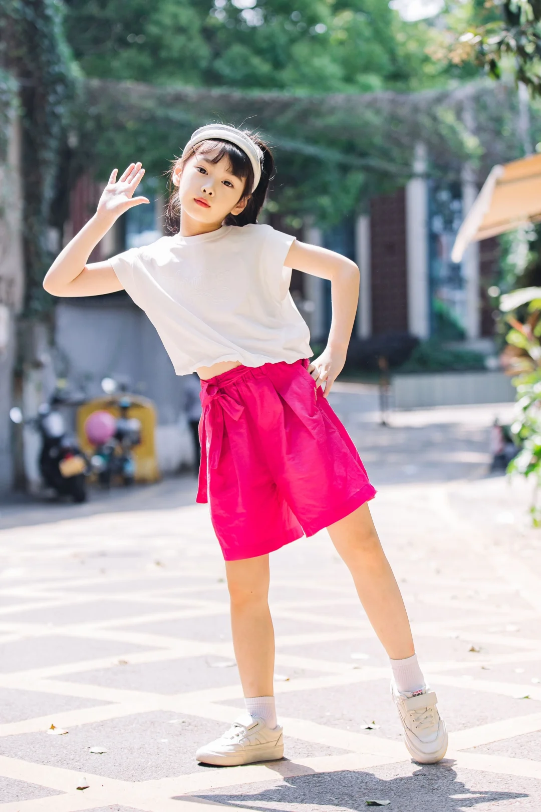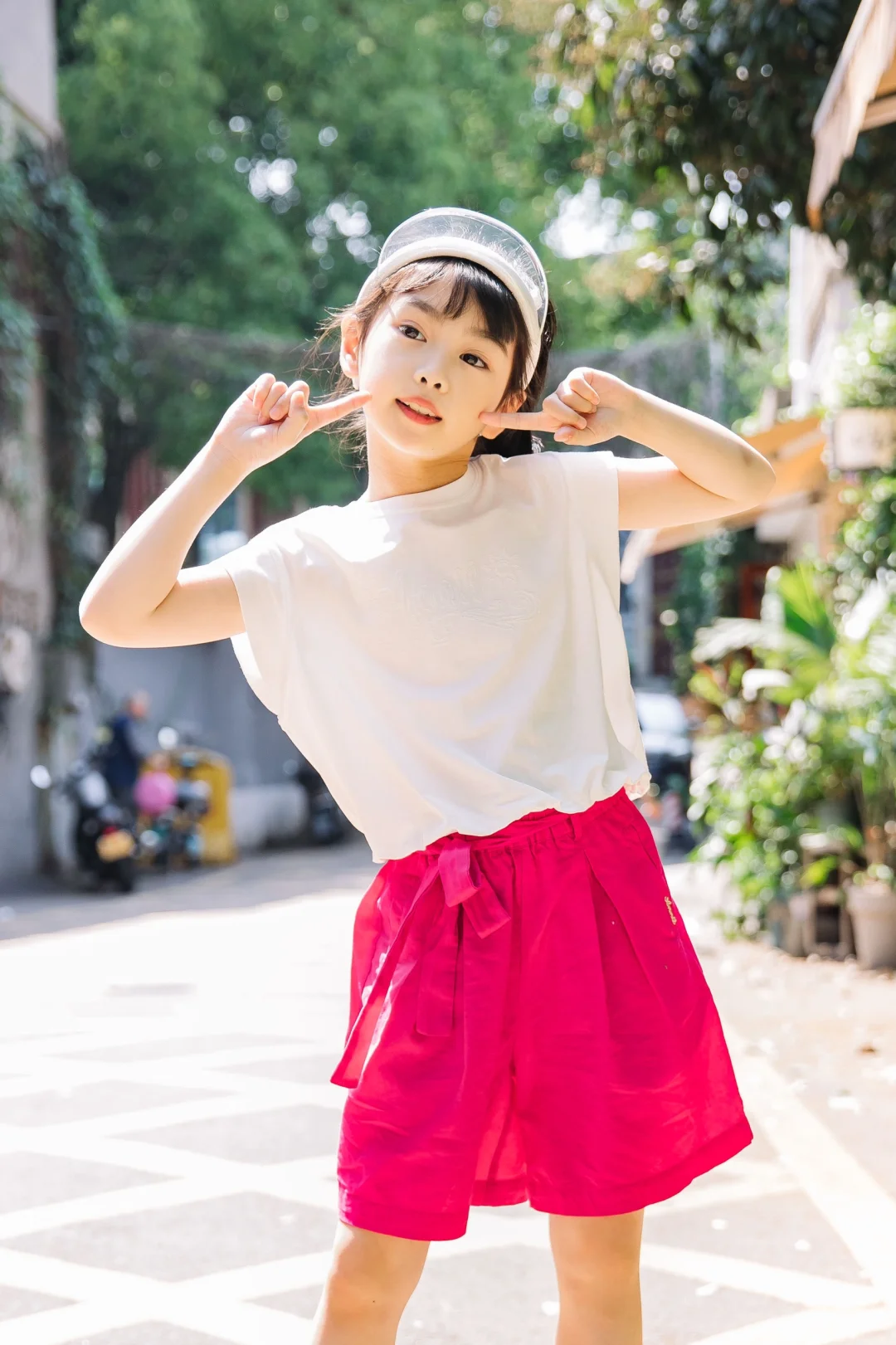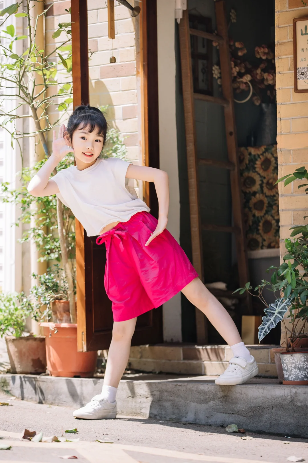 简单白T➕玫红色短裤,在阳光下闪闪发光,甩动高马尾,灵动的发梢,元气满满溢出多巴胺活力