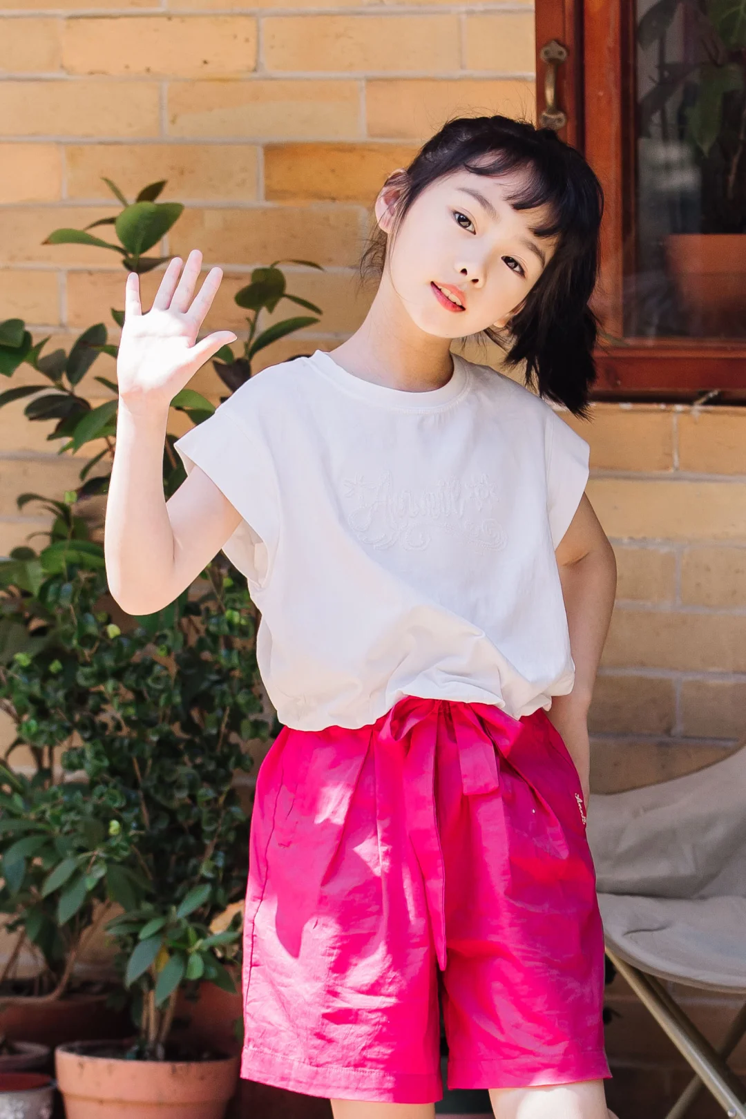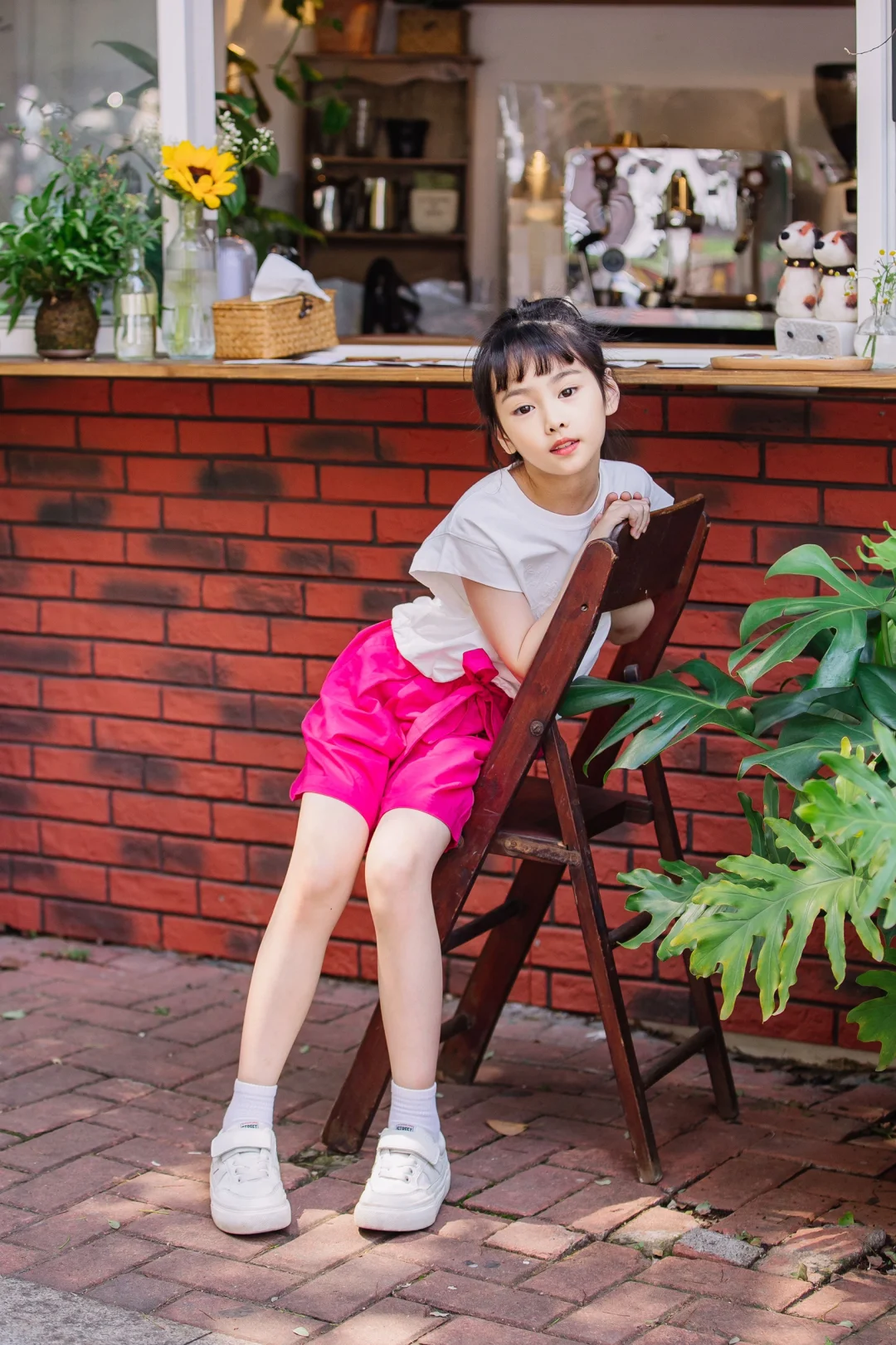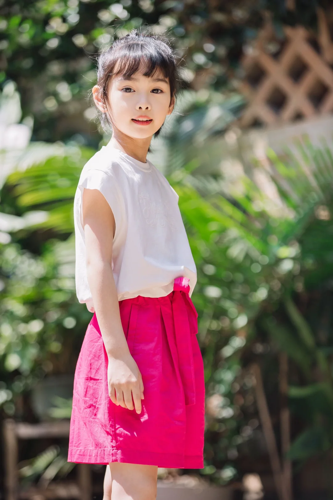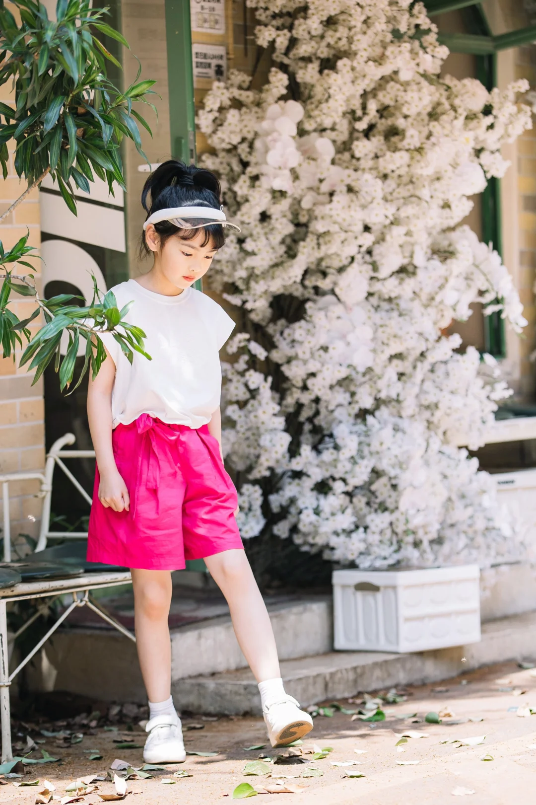 简单白T➕玫红色短裤,在阳光下闪闪发光,甩动高马尾,灵动的发梢,元气满满溢出多巴胺活力