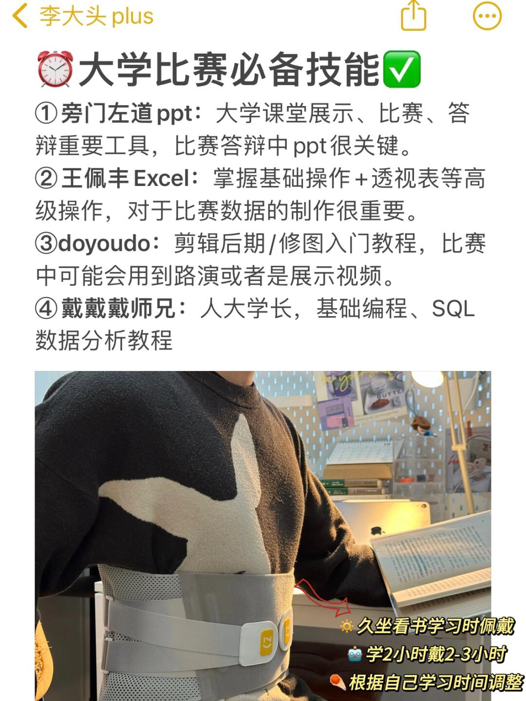 ③辅助工具:做竞赛久坐,可以带诺泰的腰带去自习室装包里,看书2小时戴一会儿。双重加压护腰系统好像有人托着。冬天加上3s瞬热垫片和羊绒保暖气垫片还保暖