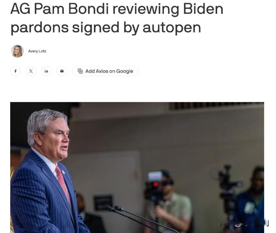 司法部长邦迪正在审查拜登通过自动笔签署的赦免令 司法部长邦迪表示,在众议院监督报告质疑自动笔赦免的有效性后,她的办公室正在审查前总统拜登使用自动笔赦免的情况。 新的国会报告认为,任何未经拜登书面批准、通过自动签名的行政命令都应无效,但法律学者表示,这一说法没有宪法依据。 拜登7 月份曾告诉媒体,他“每一个”赦免决定都是他自己做出的。