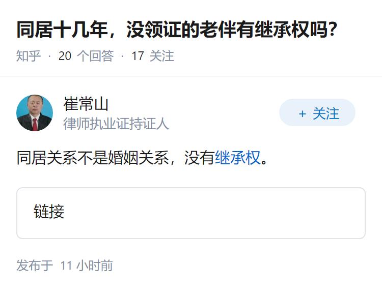 同居十几年,没领证的老伴有继承权吗?