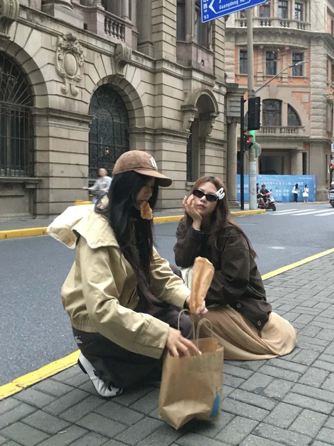 上海街头的松弛感 广东路附近都好好拍哦 这次是好朋友合照的拍照姿势分享 拍照的时候记得要和朋友互动 这样就能轻松get松弛感照片 和朋友很有默契的穿了棕色系 棕色卡其色一定是秋日穿搭的主旋律 很松弛的秋日野生感穿搭 在都市里也有自由生命力