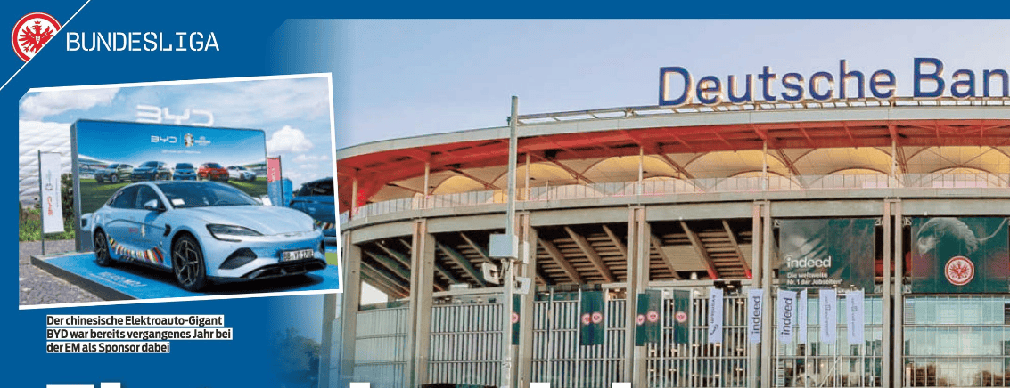 法兰克福竞技场与德意志银行的主场冠名权合同将于合作七年后到期。德意志银行自2020年起冠名其主场。虽然存在续约的可能性,但德意志银行能否在竞购战中跟上比亚迪的步伐似乎值得怀疑。