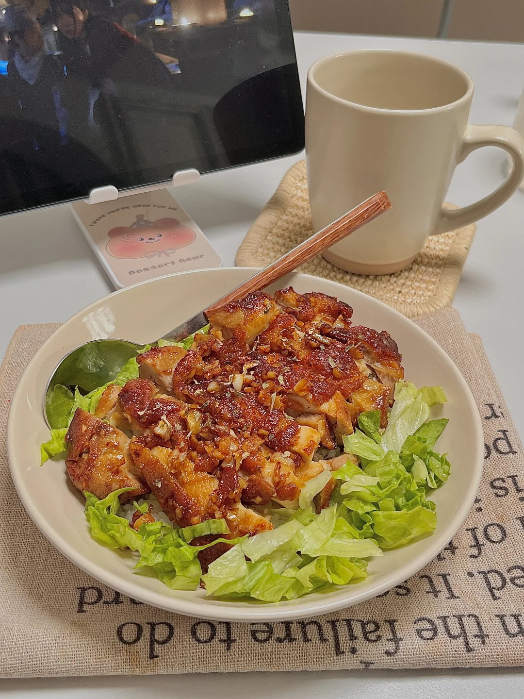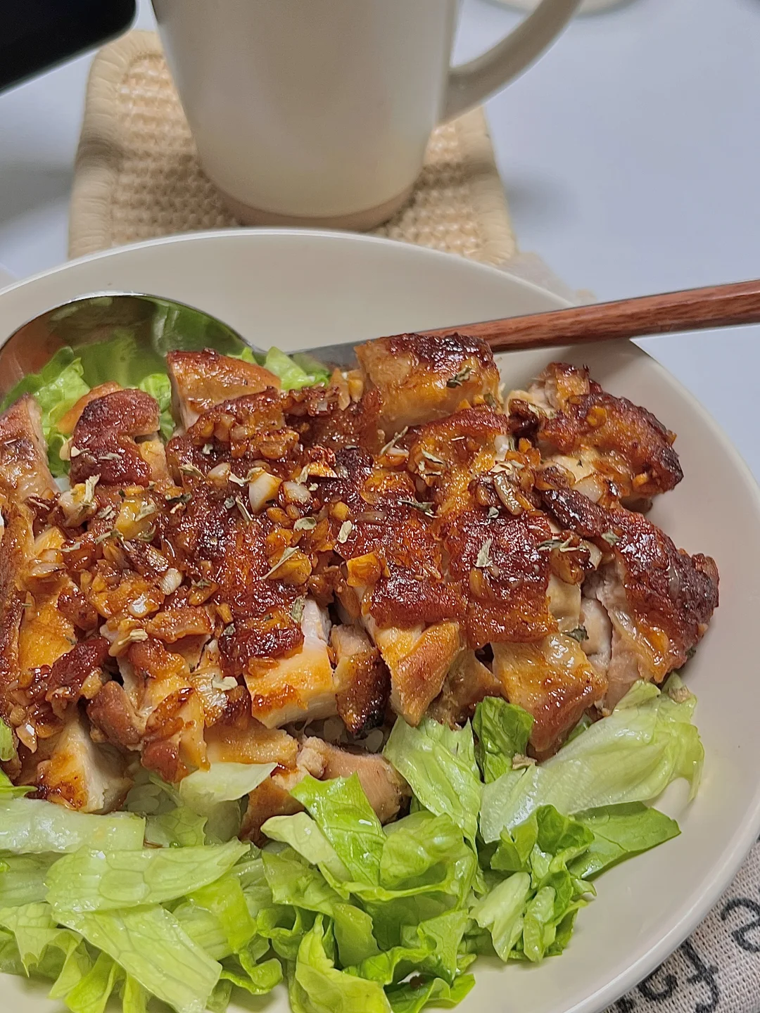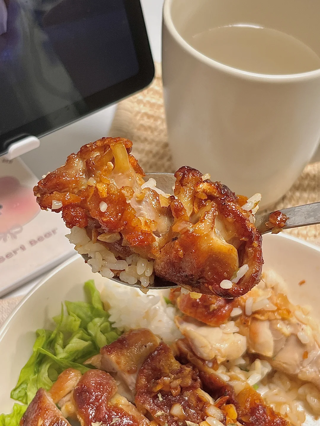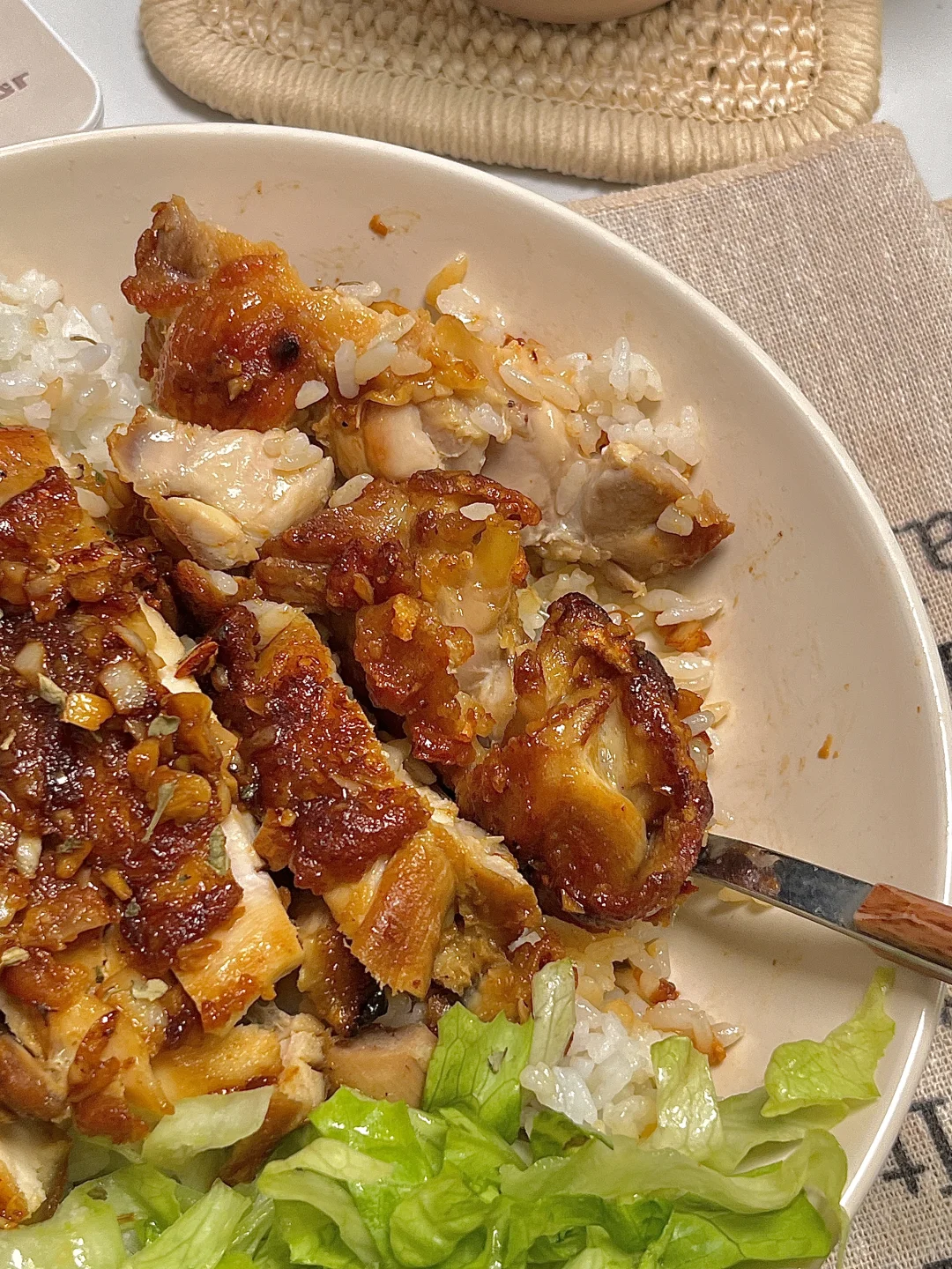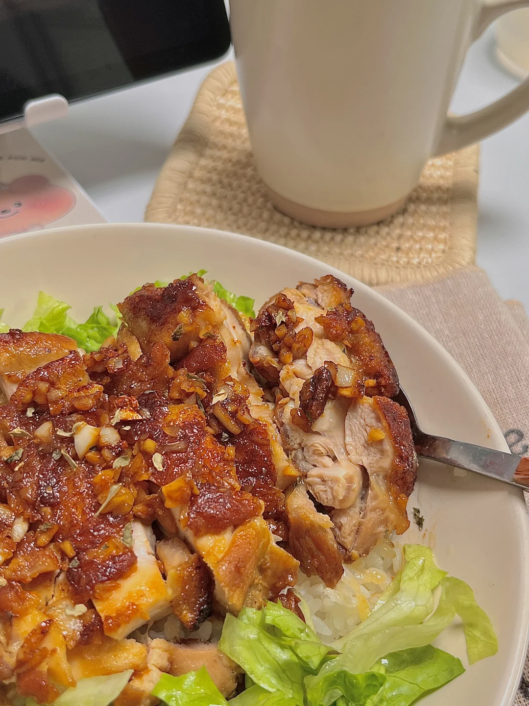 🍴今日份一人食: 黄油蒜香鸡腿饭 椰子水 . 我被黄油蒜香鸡腿饭,香迷糊了,外皮酥脆 肉质鲜嫩,大人小孩都爱吃,配着生菜丝口感刚刚好! 真的巨香巨好吃 做法也简单 爱吃的宝一定要去试试呀✌🏻