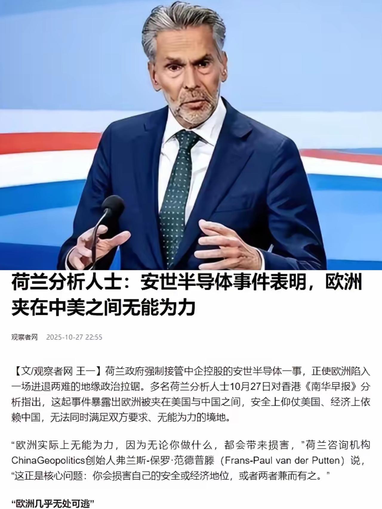 安世之争,只要荷兰没道歉认错,没把安世半导体完好无损的还给中企,那么我们某种意义上就输了。 理由很简单,安世半导体是闻泰科技100%的全资子公司,荷兰所谓的强制接管,就是明抢。拿着70多年前的老法律明抢中企资产,哪有什么“搬起石头砸自己脚”的戏码,本质就是赤裸裸的强权霸凌。 闻泰科技真金白银收购的全资子公司,被荷兰用1952年的《物资供应法》强行接管,99%股权给了第三方托管,就留1股当“念想”。连听证会都不开就撤了中方创始人的职,安插外籍董事把控公司,这哪是讲法治,分明是美国递刀、荷兰挥刀的联合打压。 有人说荷兰抢了空壳?太天真了。安世的核心专利和设计还在荷兰总部,虽然80%产能在中国,但全球供应链一断,欧洲车企立马慌了神。更讽刺的是,这公司是闻泰砸钱从亏损带成全球第二大车规芯片厂商的,每年给荷兰缴上亿税费,现在反被安上“莫须有”的罪名。 咱们的反制确实狠,掐断封测产能、收紧稀土供应,ASML都坐不住了。但反制见效不代表赢了,西方的契约精神被撕烂,中企海外投资的顾虑没消,只要安世没回家,荷兰没认错,这口气就顺不了。 你觉得荷兰会向利益低头还是硬扛到底?咱们还有啥反制妙招?