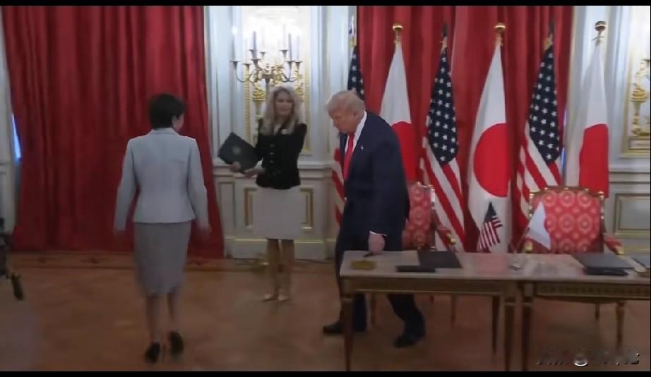 太有趣了!特朗普签完字,临走的时候还把那支刚用过的签字笔给顺走了?美国总统特朗普与日本首相高市早苗一起签署了一份历史性的“日美同盟协议”文件后,他在临走的时候将用过的那支签字笔直接拿走了,也许是觉得有纪念意义吧,也许是不想让别人“收藏”自己用过的笔? 而一旁的高市早苗确实全程透着拘谨,这绝非单纯的流程不熟。要知道这是她就任首相后首次面对重大首脑会晤,在此之前她与特朗普的交流仅停留在 10 月 25 日那通 10 分钟的电话里,连 “海军陆战队一号” 共乘流程都是临时恶补的,面对白宫团队早已轻车熟路的签署环节,她难免手忙脚乱。 更关键的是,日本在日美同盟里的被动地位早成常态,美国此前刚要求日本落实 5500 亿美元对美投资工具,还逼其将防务费占比从 2% 提至 3.5%,这种 “胡萝卜加大棒” 的施压让历任首相都倍感压力,何况是新人高市。 她会面时特意送上安倍用过的高尔夫球杆和松山英树的签名球包,试图借旧交情拉近距离,反而暴露了内心的紧张 —— 就像学生面对严苛的老师,即便准备充分仍怕出错。 特朗普的随意与高市的拘谨形成了鲜明对比,这背后藏着美日关系的真实底色。美国历任总统本就有重视签署用笔的传统,但特朗普的 “直接拿走” 更添个人风格,毕竟他连与安倍会谈时都能随性提及私人友谊,对一支笔自然不会讲究繁文缛节。 而高市的手足无措,本质是日本 “结构性困境” 的缩影:日本媒体早就指出,美日同盟的不平等让日本必须紧盯美国动向,岸田访美时即便获得国宾待遇,也得靠渲染 “高规格接待” 当政绩,更别说刚上任的高市。 她既要应对特朗普可能突然提出的额外要求,又要在国内黑金丑闻余波中稳固支持率,这种内外夹击下,面对美方熟稔的仪式流程,难免显得局促。 再看那两份 “历史性文件”,本质是美日各取所需的政治秀:美国要借日本的稀土供应链巩固技术优势,日本则想靠投资换关税减免,这种心照不宣的合作里,特朗普拿笔的小动作更像个注脚 —— 既彰显了美方的主导地位,又透着点个人化的随性。 而高市的紧张也并非个例,当年岸田首次以国宾身份访美时,即便筹备已久仍被批评 “表演痕迹过重”,新人高市面对风格更直接的特朗普,手足无措反而成了真实写照。 毕竟在 “特朗普恐慌” 仍在日本流行的背景下,这位新首相既要展现对美友好,又怕出错得罪美方,这种矛盾让她在繁琐的日本仪式与强势的美国气场间难以自处,连递文件的手势都透着小心翼翼,与特朗普拿笔时的干脆利落形成了有趣的反差。