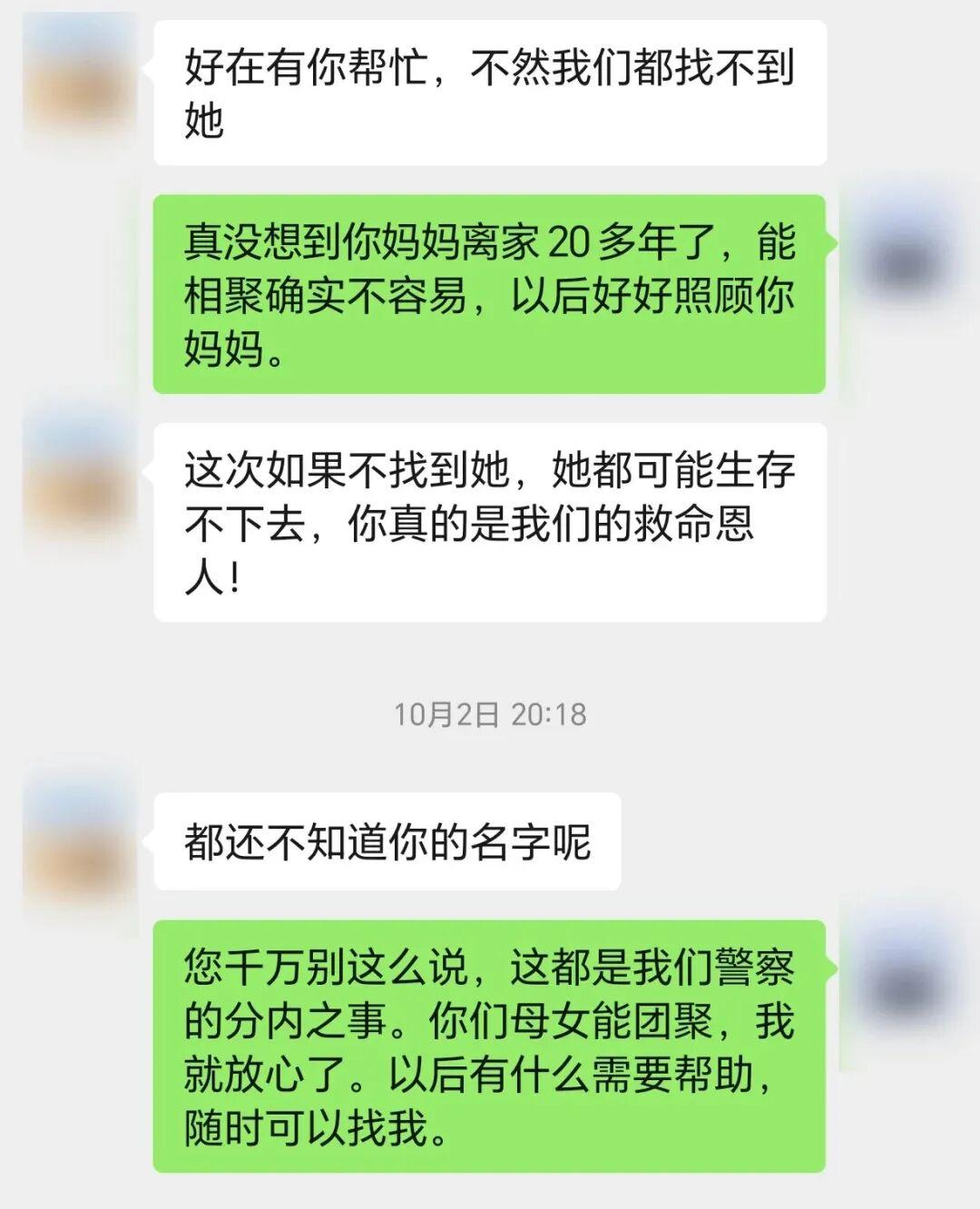 2025年8月,温州一名民警在走访暂住人口的时候,发现一名老人精神状态不好,问不出家庭情况,也找不到身份信息,就关注了起来。后来民警发现老人家中有字条写着地址和日期,民警立刻联系那边的警方,核查半个月,找到了找了老人23年的女儿! 2025年9月27号下午,温州龙湾状元派出所的接待室里,胡女士盯着眼前那个头发花白、眼神有些涣散的老人,足足看了半分钟。   老人穿着洗得发白的外套,双手局促地攥着衣角,听到动静也只是迟钝地抬了抬头。   就在这时,老人嘴角动了动,含糊地冒出一个名字,那是胡女士小时候的乳名。   胡女士再也忍不住,快步上前拉住老人的手,哽咽着喊了声“妈”,眼泪瞬间涌了出来,紧紧把人抱在怀里。   旁边的民警戴其式悄悄退到门口,给这对阔别23年的母女留出了空间。   时间拉回到2002年,那时胡女士才12岁,家住江西丰城。   一天,爸爸妈妈因为琐事大吵了一架,脾气上来的妈妈何女士摔门就走,家里人都以为她只是去亲戚家消消气,过两天就回来了。 可等到天黑,何女士也没露面,家人开始着急,发动亲戚朋友四处打听,把能想到的地方都找遍了,连一点音讯都没有。   从那以后,找妈妈就成了胡女士生活里的一件大事。   她跟着爸爸跑遍了周边的城市,在电线杆上贴过寻人启事,也在网上发过寻亲信息,可每次有线索赶过去,结果都是失望。   爸爸在世时,父女俩最常说的话就是“再找找,说不定就有消息了”。   后来爸爸去世,胡女士成了家,有了两个孩子,可找妈妈的念头从来没断过,她总跟孩子说“你们还有个外婆,妈妈一定要找到她”。   事情的转机出在2025年8月,戴其式像往常一样在辖区里走访暂住人口。   敲开何女士租住的小单间时,他就觉得不对劲。   问她老家在哪,她支支吾吾说不清楚,问家里有什么人,她就低头不说话,精神状态时好时坏。   戴其式没把这当成一次普通的排查,心里记下了这个特殊的老人。   之后的一个多月里,戴其式经常绕到何女士的住处,有时带点水果,有时坐下来聊几句家常。   一开始何女士很防备,话很少,戴其式就慢慢跟她聊天气、聊附近的菜市场,从不提家里的事。慢慢的,何女士对这个经常来的民警放下了戒心。   有一次何女士和邻居发生纠纷,戴其式在调解的时候,意外发现了一张纸条。   纸条上的字迹已经模糊,勉强能看清“江西丰城”“女儿”还有两个生日日期,其中一个正是胡女士的生日。   戴其式立刻联系江西丰城警方,可反馈回来的消息让他心里一沉,何女士的户口因为失踪多年早就被注销了,家人的户口也迁走了。   线索断了,戴其式没放弃,他把何女士的外貌特征、平时说过的零碎信息都整理好,一次次跟丰城警方沟通,反复比对当地的寻亲信息。   经过两地警方半个多月的排查比对,终于找到了胡女士的联系方式。当戴其式拨通电话说明情况时,电话那头的胡女士激动得话都说不连贯,当天就带着丈夫连夜开车往温州赶。   重逢之后,新的问题来了,何女士因为没有户口,医保没法交,连坐火车都成问题。   戴其式知道后,主动帮着跑户口恢复手续,可按规定需要房东出具居住证明,房东一开始怕担责不肯签字。   戴其式就一次次上门跟房东解释,讲何女士的遭遇,说胡女士23年的寻亲经历,最后房东被他的坚持打动,主动签了字。   户口恢复的手续在一步步推进,胡女士也终于能安心带着妈妈回江西老家了。   这些日子里,胡女士每天都陪着妈妈,早上一起去小区散步,中午给她做爱吃的饭菜,晚上坐在床边跟她聊以前的事。   一开始何女士还不太敢说话,慢慢的,在女儿的陪伴下,她的精神状态好了不少,有时还会主动跟外孙外孙女讲胡女士小时候的趣事。   10月15号那天,胡女士特意委托在温州的朋友,给戴其式送来了一面锦旗,上面绣着“排忧解难寻回至亲”八个字。   朋友转述胡女士的话说:“23年了,我以为这辈子都见不到妈妈了,是戴警官的不放弃,让我们母女能再团圆,这份恩情我们记一辈子。”   面对感谢,戴其式只是笑着摆手,他说自己不过是做了该做的事。   可对胡女士一家来说,正是这份“该做的事”,这份走访时的警觉、相处时的耐心、遇到困难时的不放弃,才让一个破碎了23年的家,重新拼凑完整,让那份从未割舍的亲情,有了温暖的归宿。