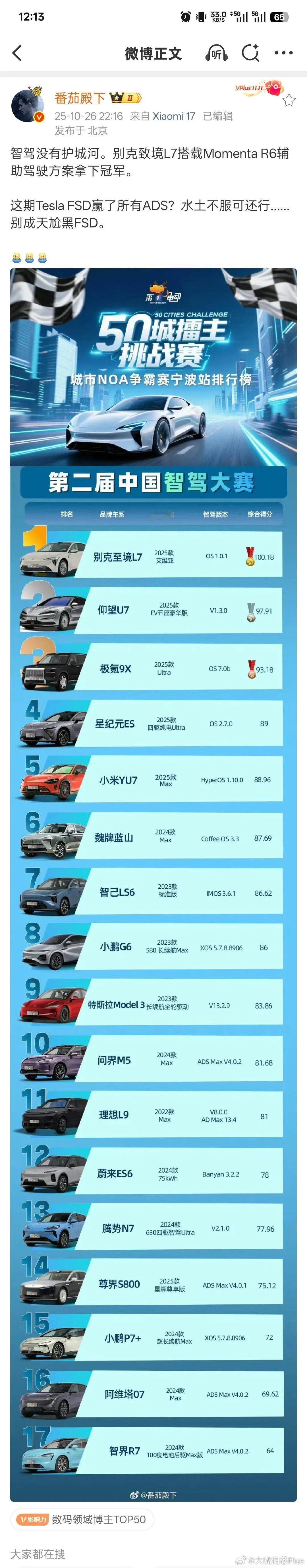 “番茄“又在宣传智驾没有护城河,这次的理由是合资品牌的车都能拿第一,所以大家的水平都差不多。