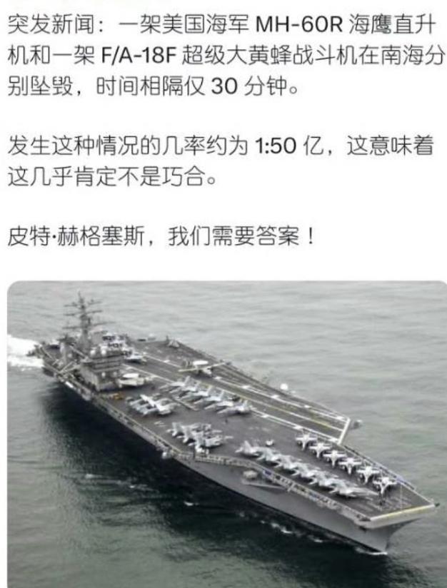 美军确实不行了,30分钟掉了两架飞机,时后连掉海里的飞机都不要了,仓皇返航。原本是来耀武扬威的,结果却丢人现眼。美国人必须承认一个事实,服役50多年的“尼米兹号”航空母舰“的确是太老了”。用这样的老古董来南海“搞事情”,显然是不可能的。目前原因未知,但是在我看来,不管是什么原因,都意味着美军的衰落开始了。事实证明,美军就是个纸老虎。最后我有个疑问,既然排除了人为的干扰,为什么这艘航母突然就跑了?