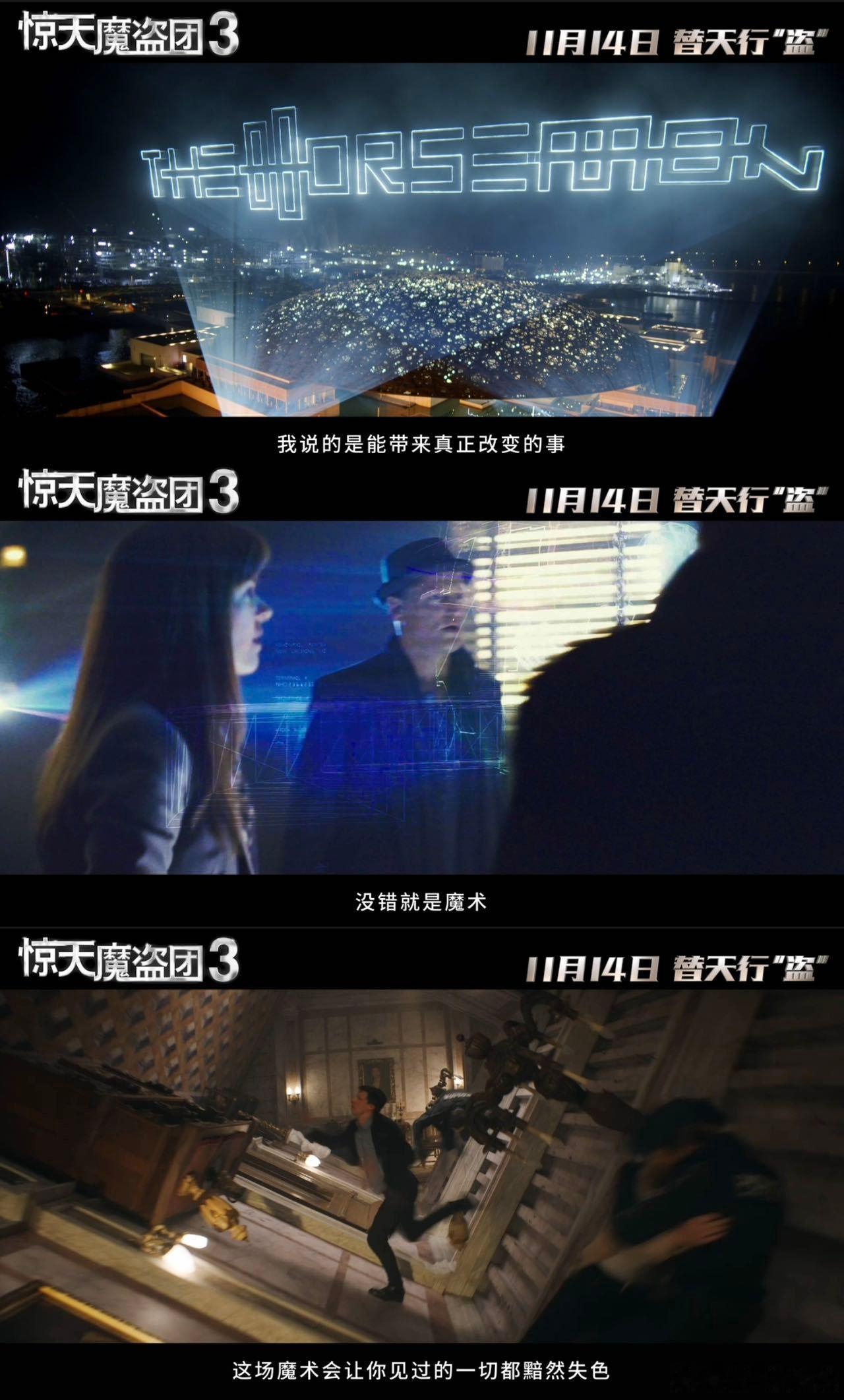 看惊天魔盗团重燃魔术魂 《惊天魔盗团3》官宣定档11月14日,这可是2025年最期待的电影之一啊!想想当年cos四骑士的日子,再看看现在即将上映的新作,满满的回忆和期待。这次的魔术场面更加宏大,剧情也更加精彩,一定要去电影院感受这场视觉盛宴!