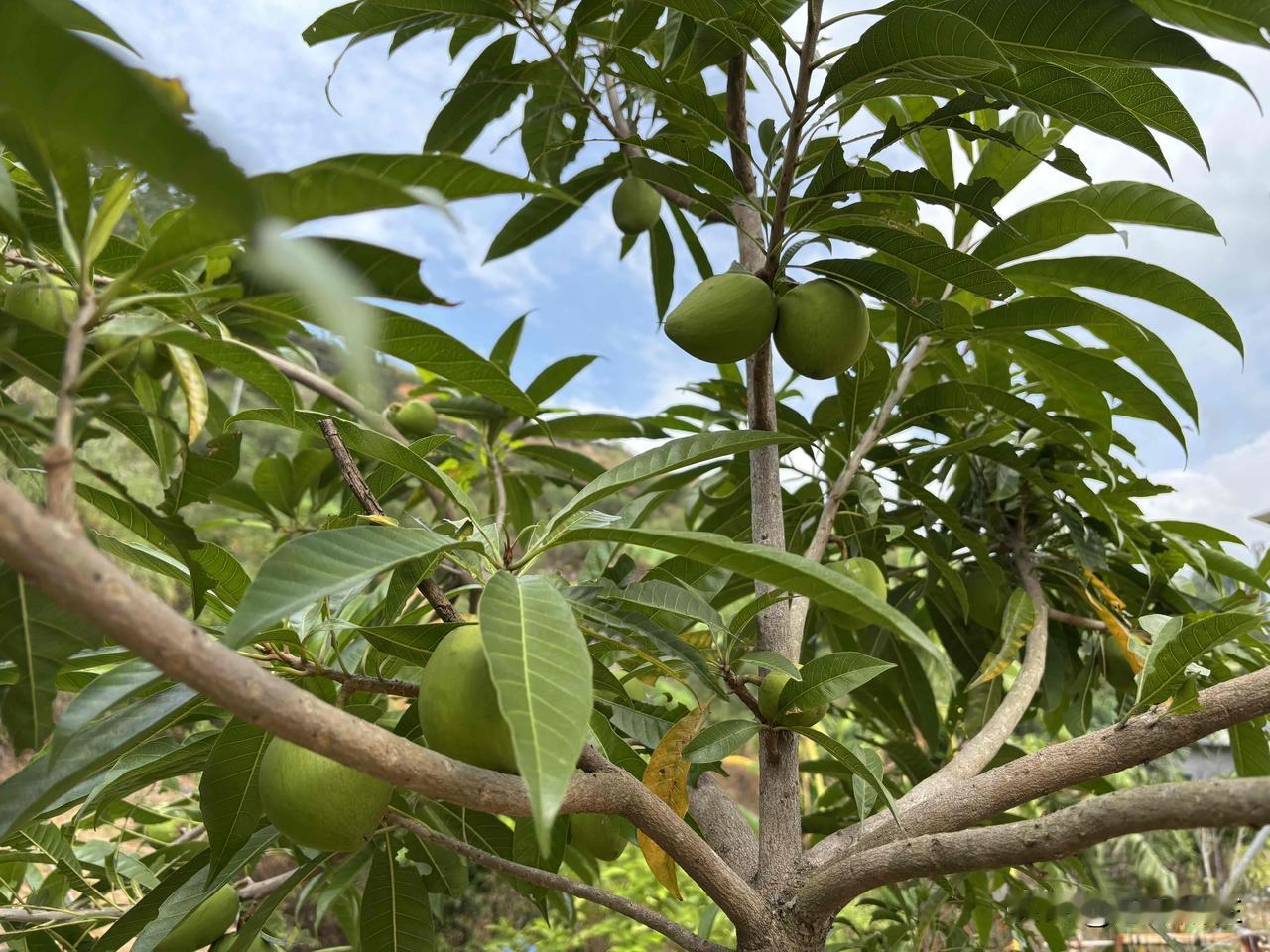 大山里的鸡蛋果,挂在树上,确实像一个个鸡蛋,只是生机盎然的绿色的。 还不成熟,不然可以品尝一下,据说还蛮好吃的!