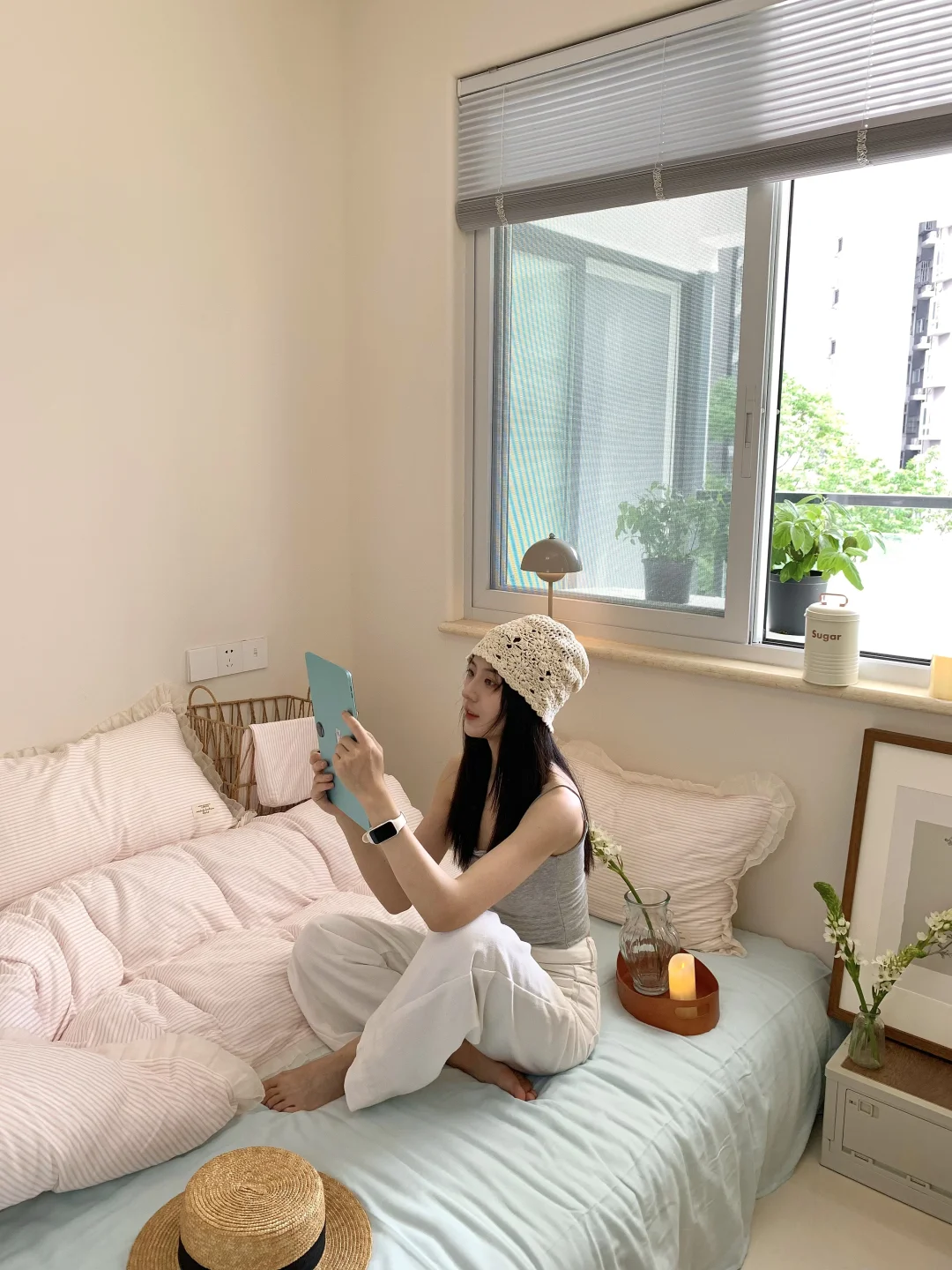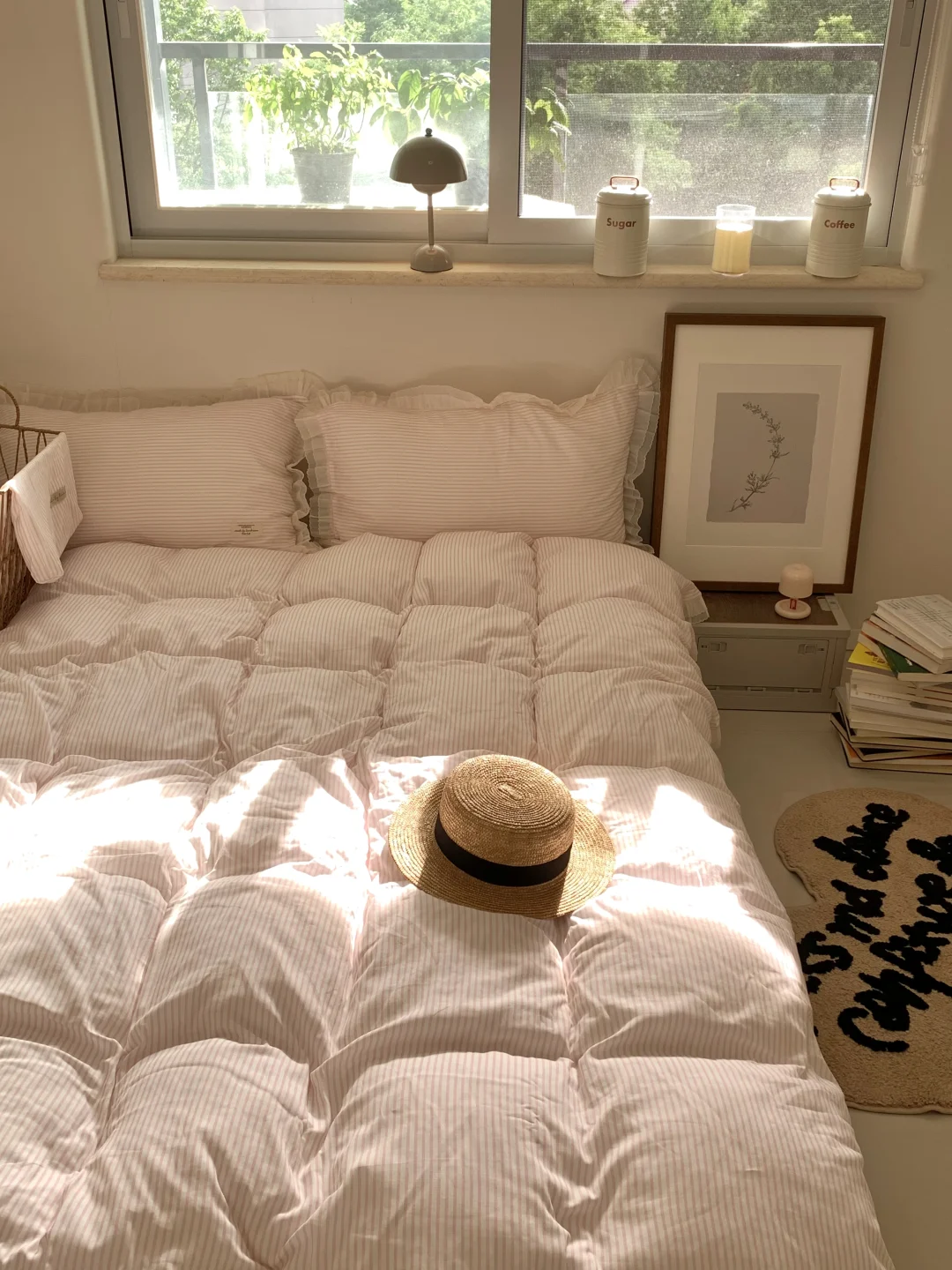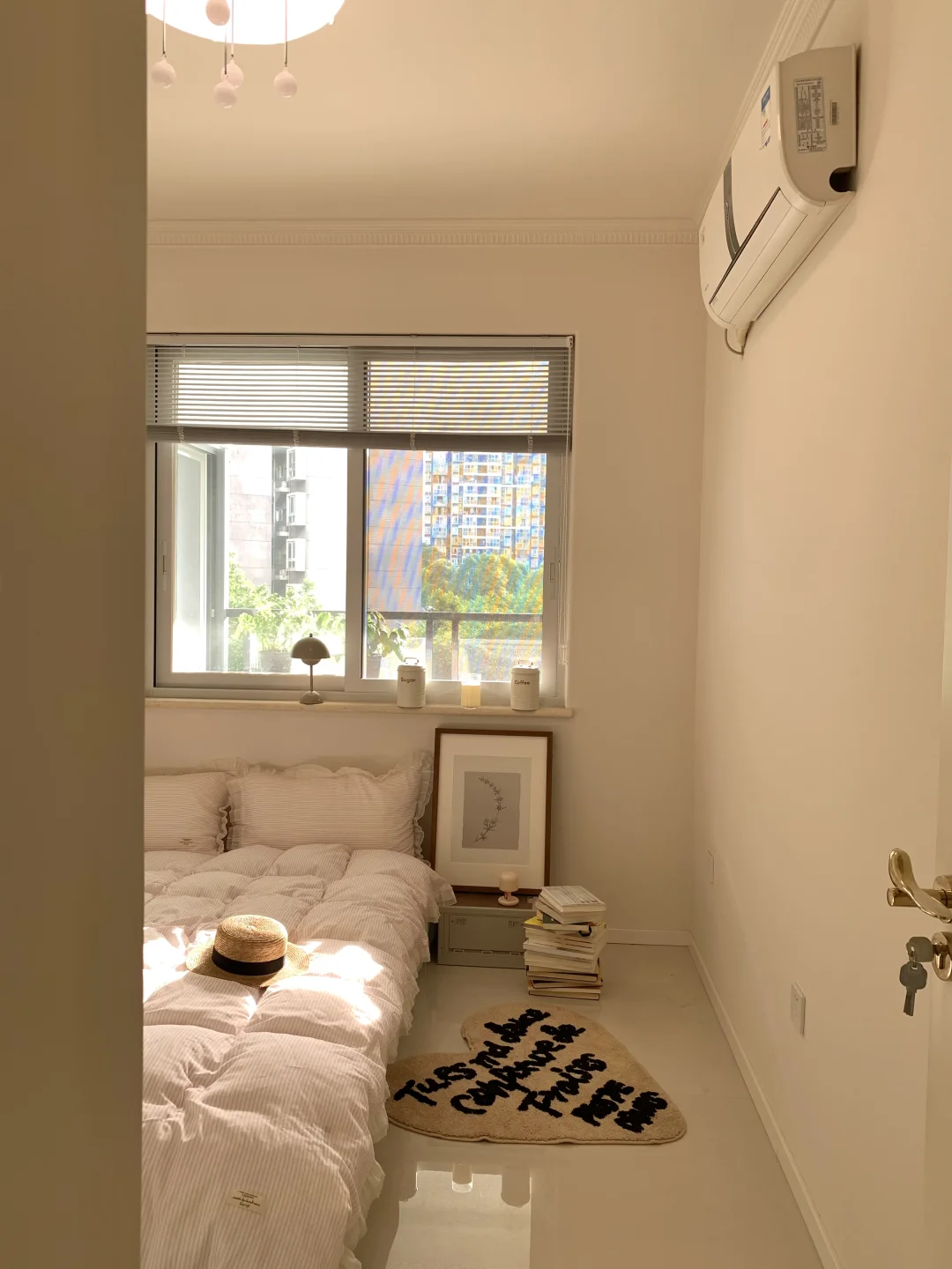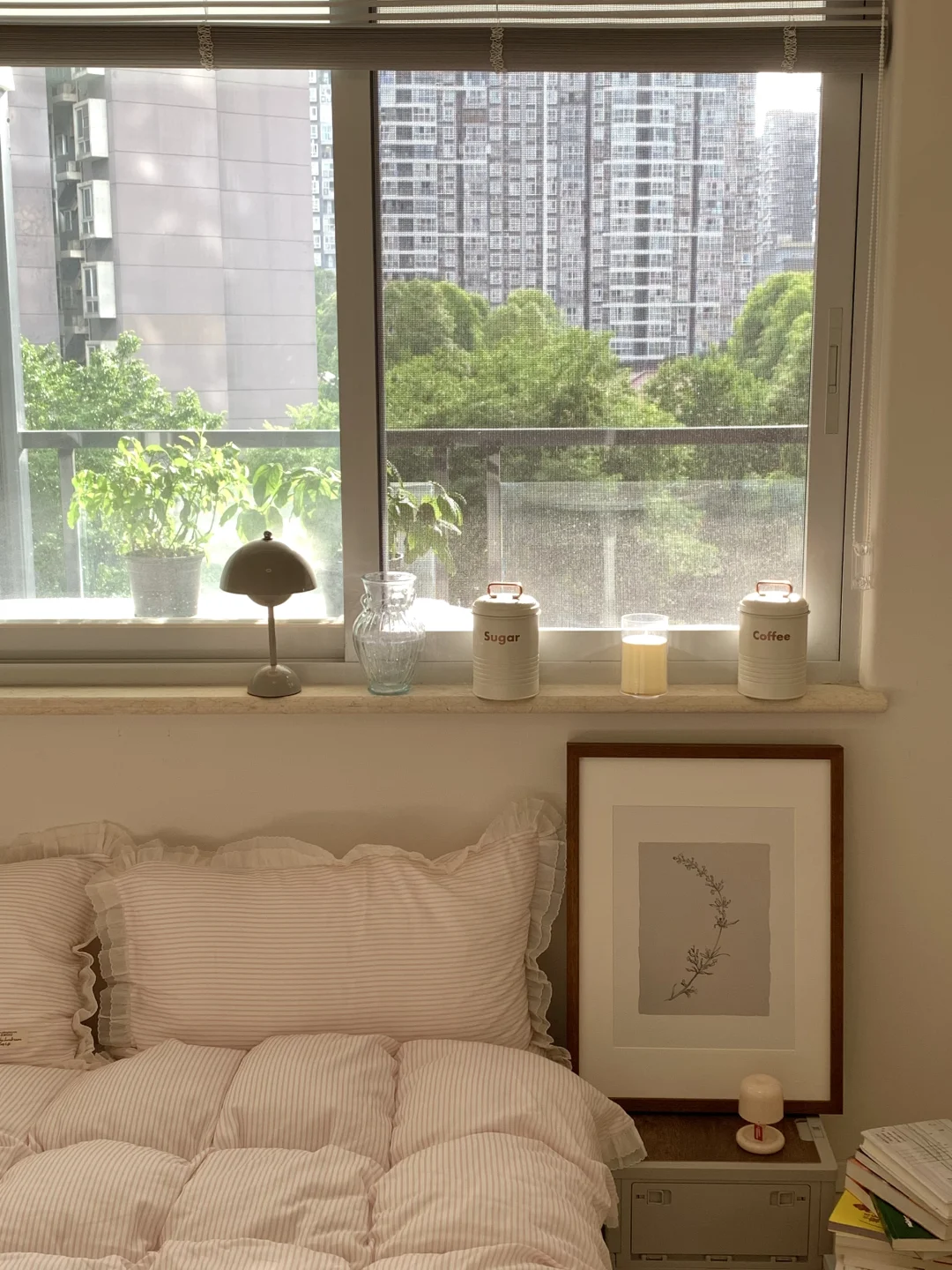 嗨喽啊~这里是铃子的家🏠 我无滤镜7平米韩系卧室太好睡啦~ 还有点夏日冰淇淋的味道🍧 分享一下我滴布置思路~ ▪️换个韩系滴四件套🛏️ ▪️摆一点美丽的花花🌸 ▪️加一点原木色点缀🪵