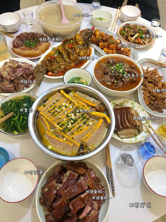 嗨喽啊~这里是铃子的家🏠 普通人在新家过的di一个年 小户型的家,年味不简单也不浓[害羞R] 妈妈和我精心准备做了一大桌子年夜饭 家人围坐而食,一起共享这人间烟火 (香香的饭饭 美味的菜菜) 然后微醺的年味和红色更搭吖~ 哈哈哈哈哈 然后附上年夜饭菜谱啦🫧 ▪️腊肉香肠拼盘 ▪️腊排骨 ▪️烟熏鹅 ▪️糖醋鱼 ▪️香菇烧鸡 ▪️水煮牛肉 ▪️粑粑肉 ▪️梅菜扣肉 ▪️炸山药条 ▪️羊肉汤 ▪️炒时蔬