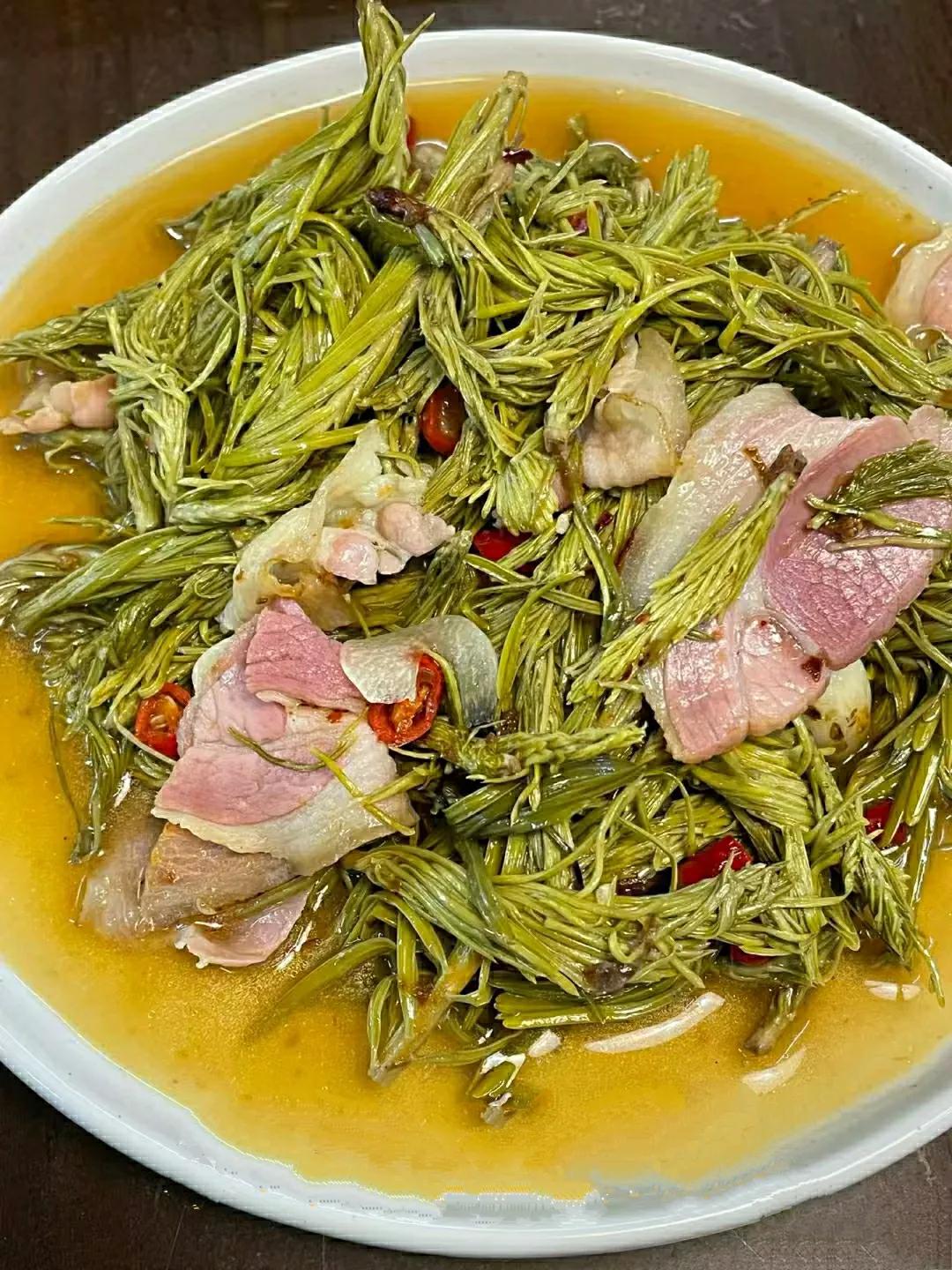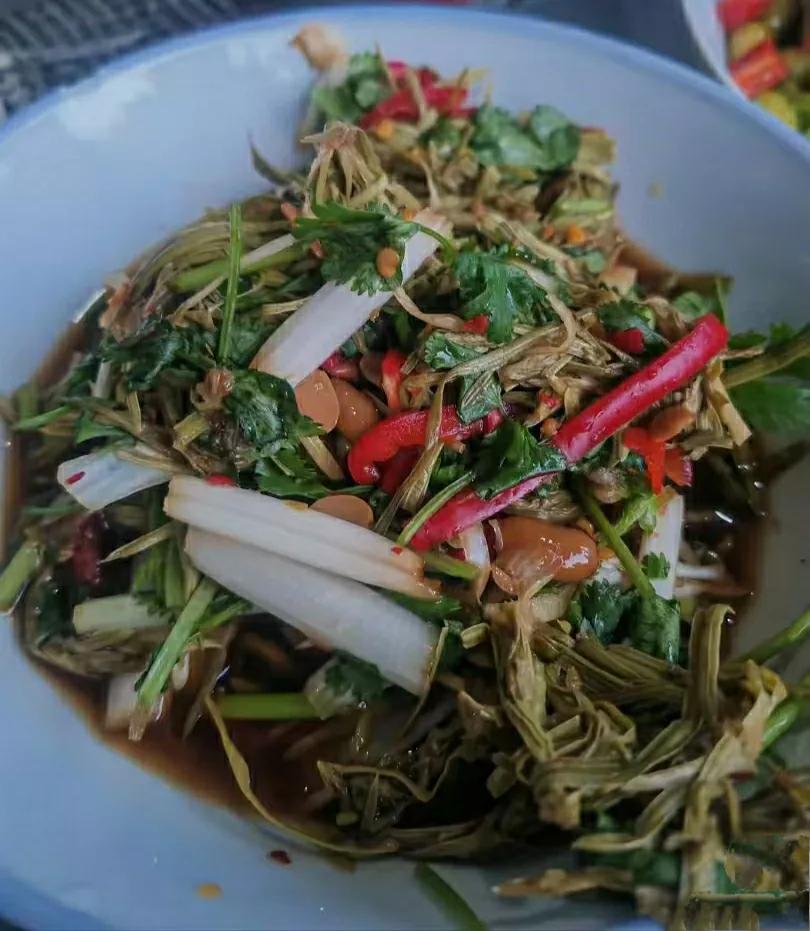 云南菜没有最野,只有更野,都说云南菜是得了神农的真传[笑] 之前在云南住的时候,特别喜欢吃云南的一道野菜,叫沙松尖,云南本地人看到这个就会走不动道,必须把背篓和衣服口袋塞的满满当当才肯回家 我吃过的凉拌沙松尖,还有火腿炝炒沙松尖真的超好吃,尤其是加水豆豉、生抽、柠檬汁、香芹、芫荽、和小米辣拌出来的最好吃,酸辣清香又开胃下饭,好吃到超乎想像,而且松尖是越嚼越香,是那种松树的清香味,能与云南的各种菌子相媲美 当然了,在云南,还有很多种沙松尖的吃法,我没有一一吃过,有可能还有更美味的做法 记得第一次吃,是在大理巍山一家叫什么师傅的店,点了一道凉拌沙松尖,还有素鸡,素鸡是用鲜核桃做的,两道菜放在一个盘子里装着,真的是清新怡人,味道惊艳…… 朋友们若是去云南玩的话,可以尝尝这道菜哦[笑]