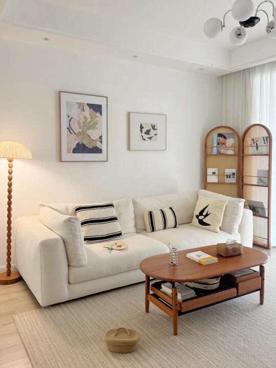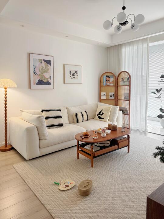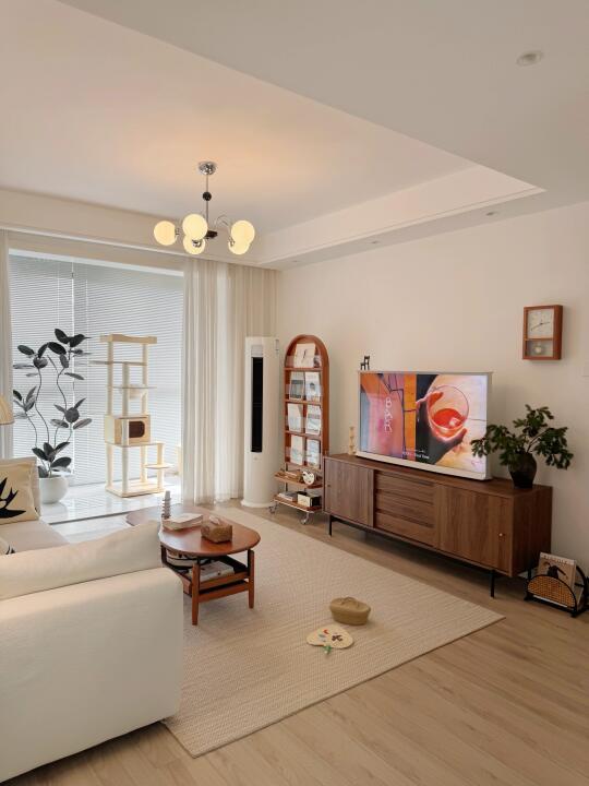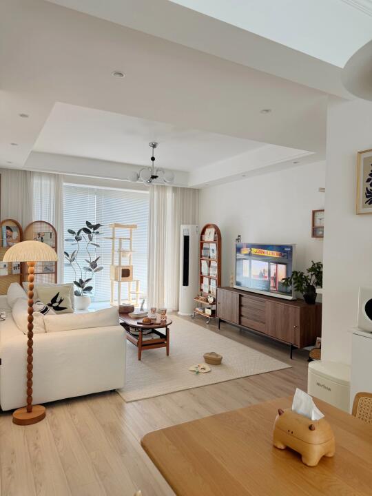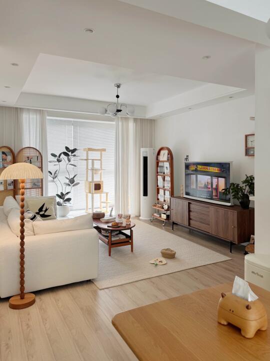 五年前简装的家,入住后慢慢添置喜欢的家具软装,我的小房子越来越温馨,虽谈不上高级,但住起来超舒服,这个70平的小房子就是我的能量场,每天下班回家一打开门就会被治愈。 每天回来打开落地灯和ins魔豆吊灯,灯光让家敲温馨~躺在沙发撸撸猫看看电视还挺幸福。 普通人的家不需要多奢华,干净温馨住起来舒服就很好~ -
