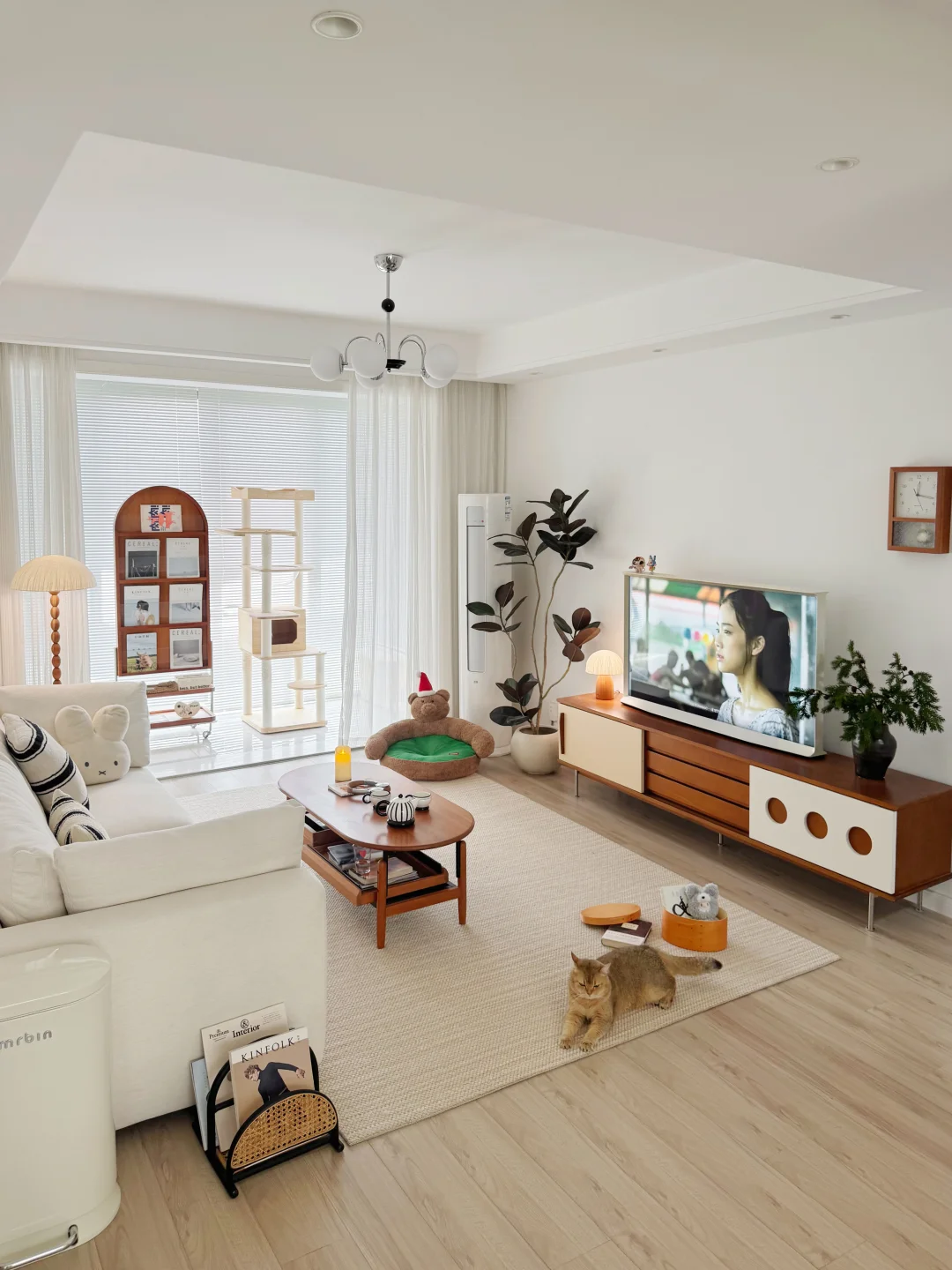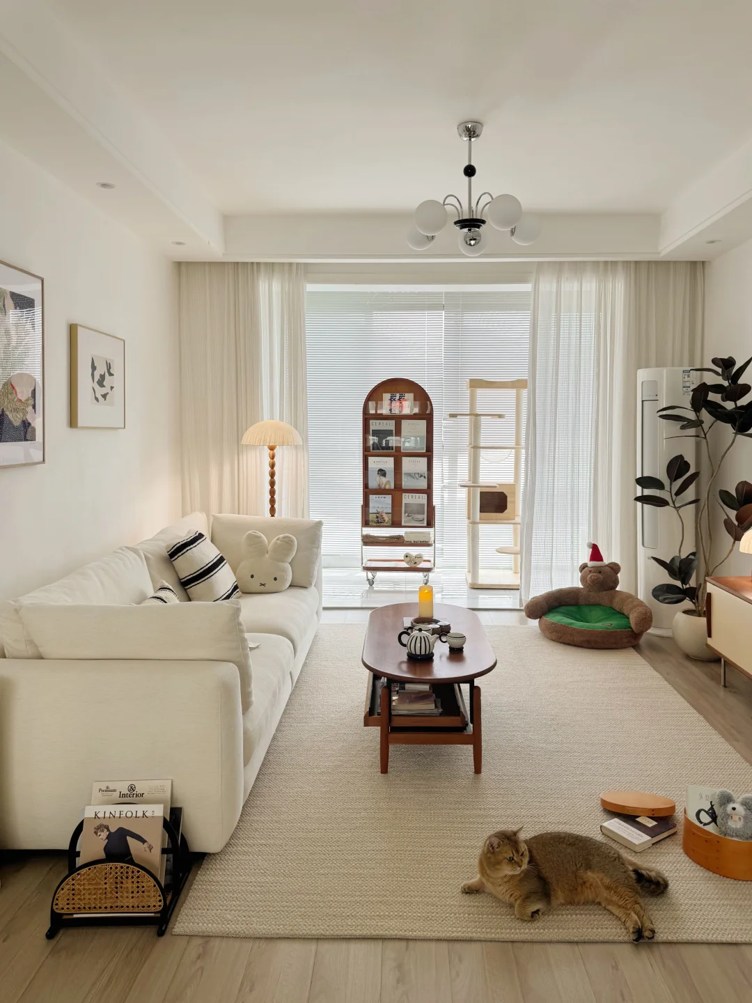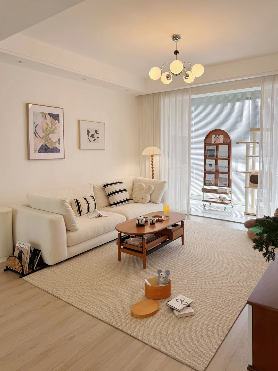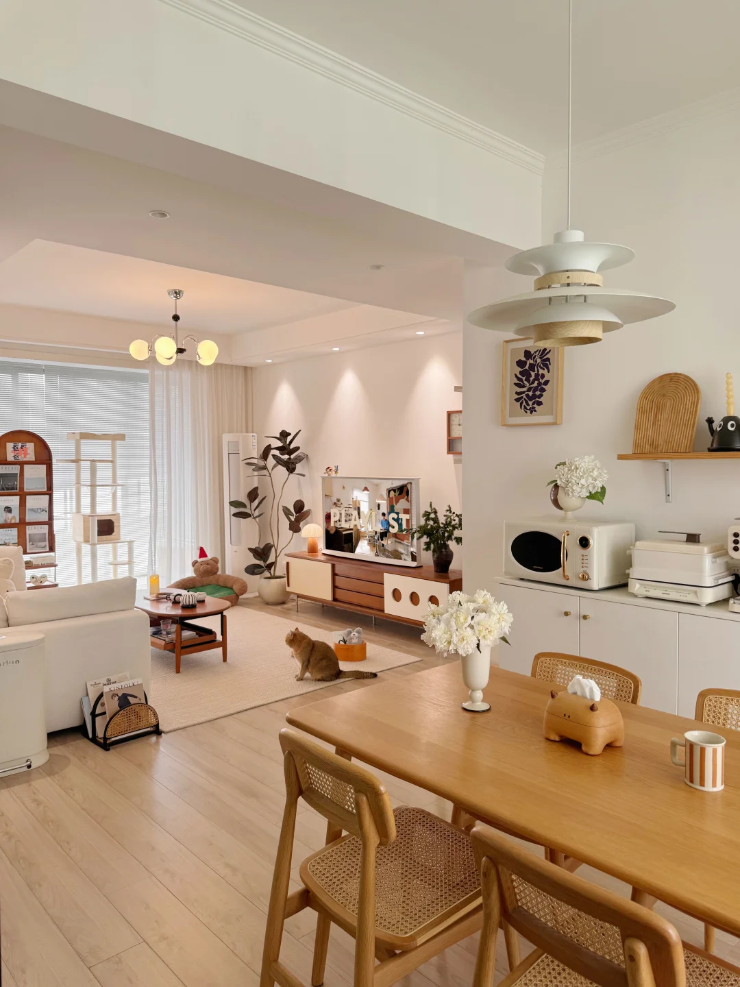 在小城市拥有一个70平的小房子,没请设计师自己倒腾,用心布置成这样我已经尽力了~ 害怕翻车硬装从简,靠家具软装搭配出我喜欢的风格~ 客厅四周装射灯加上ins魔豆吊灯,灯光给家营造了温馨的氛围~ 普通人拥有这样的小家真的很满足了,终于通过自己的努力过上了小时候梦想中的生活~ -