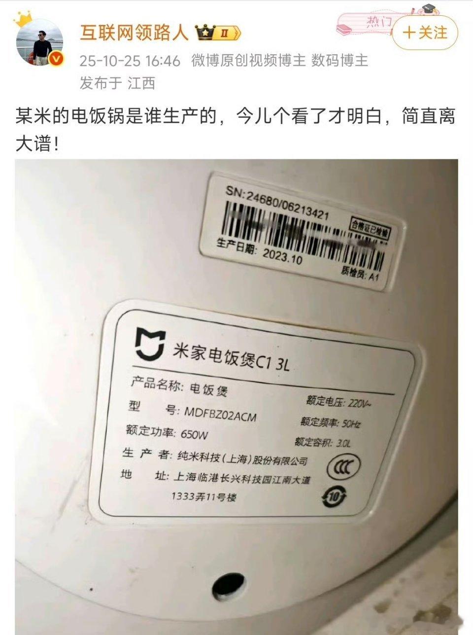 讲道理,纯米本来就是小米生态链公司,米家电饭煲大多数是纯米代工的,售后由小米直接负责,这个哪里离谱了?