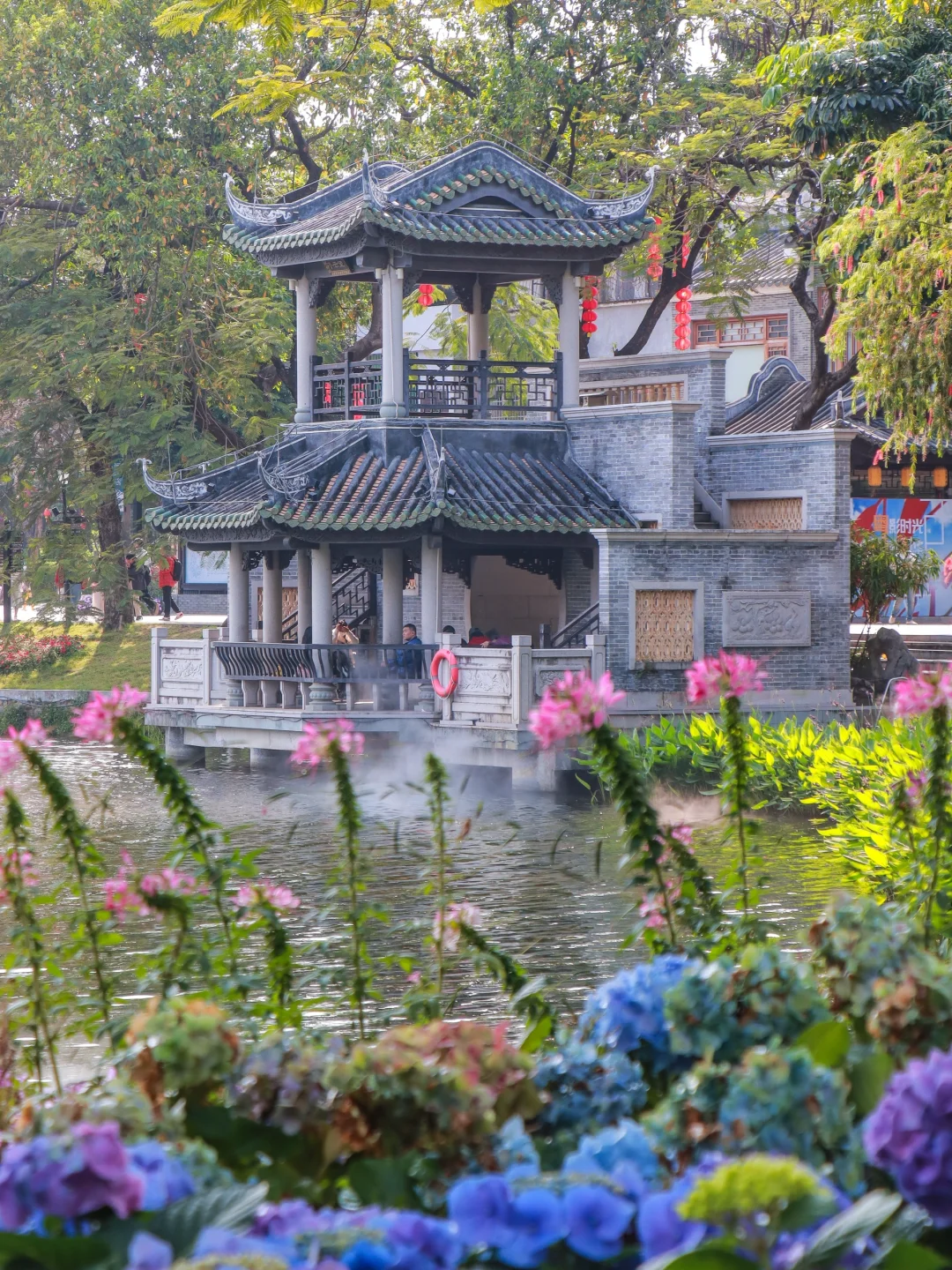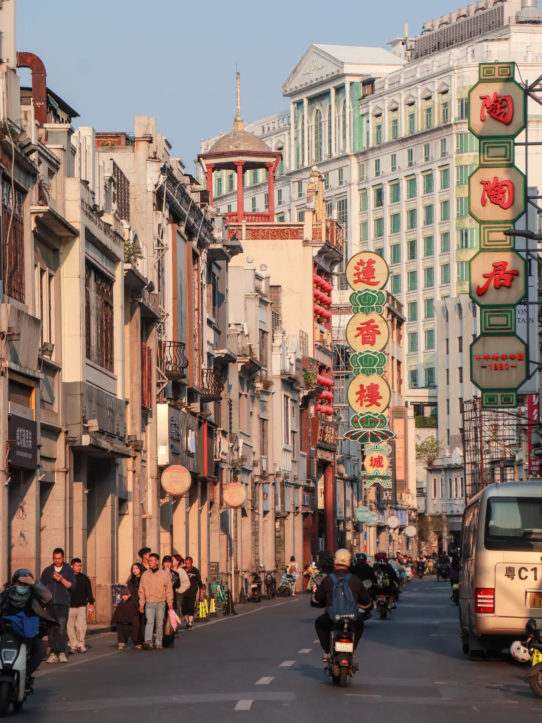 ▫️下午:去荔湾湖公园,在这里能感受到满满的老广生活气息,一路沿着龙津西路(骑楼下很多美食老字号)走就到了恩宁路(百年骑楼老街),恩宁路旁边就是永庆坊,但个人感觉可进可不进,继续沿着骑楼走就到了上下九步行街(里面都是买衣服和小吃)