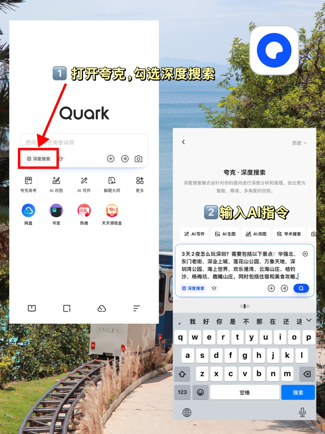 ai搜索夸克AI全能助手夸克夸克ai有问题找夸克深圳深圳攻略深圳美食深圳旅游深圳旅行