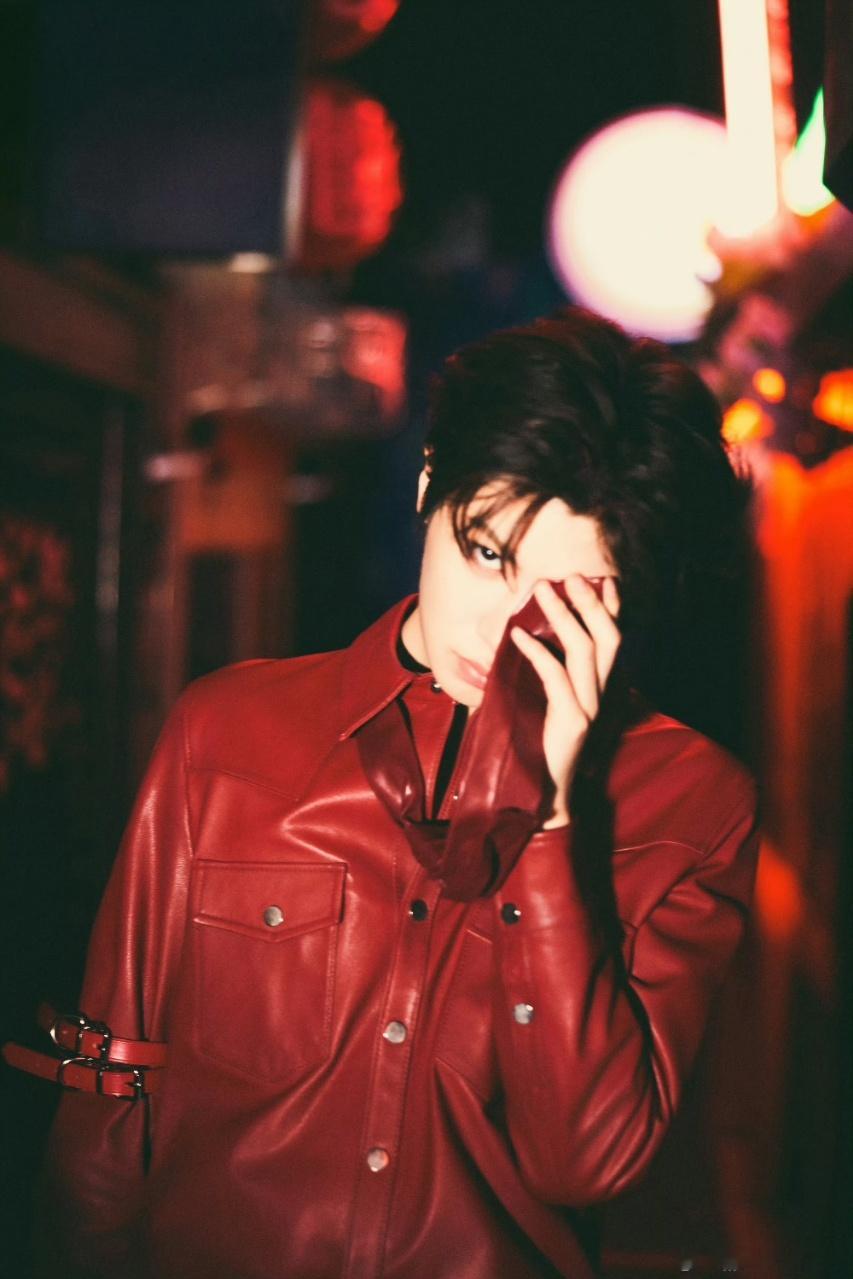 黄明昊[超话]黄明昊红色皮衣红领带黄明昊火力全开红皮衣黄明昊火力全开的红皮衣