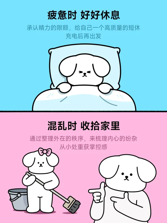 生活的状态起起落落落落落落落落落落! 关键在于我们懂得如何温柔地把自己一次次扶起 调整生活状态的8个秘诀: ✅低落时,出门走走 ✅焦虑时,写下思绪 ✅疲惫时,好好休息 ✅混乱时,收拾家里 ✅迷茫时,读一本书 ✅郁闷时,防空自己 ✅紧绷时,舒展身体 ✅孤独时,主动联系