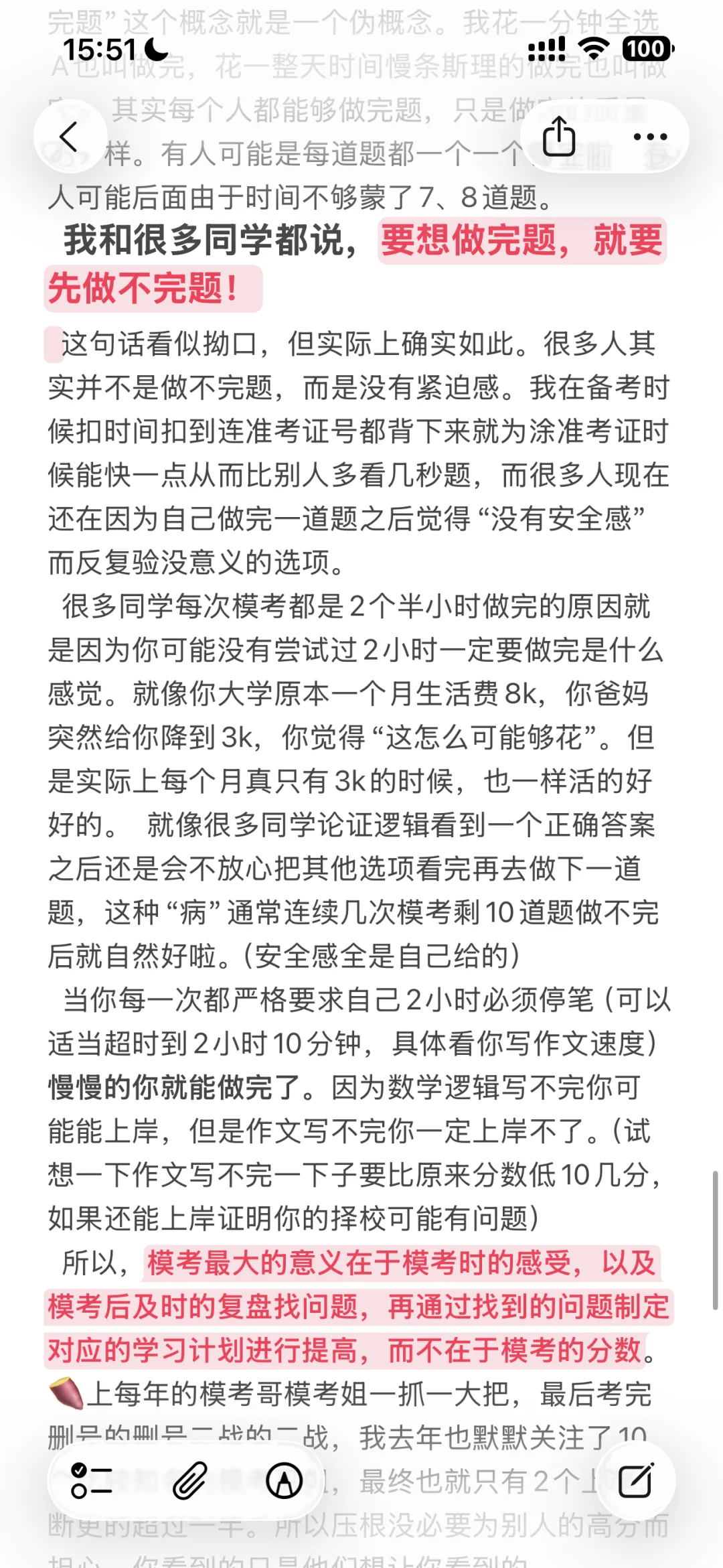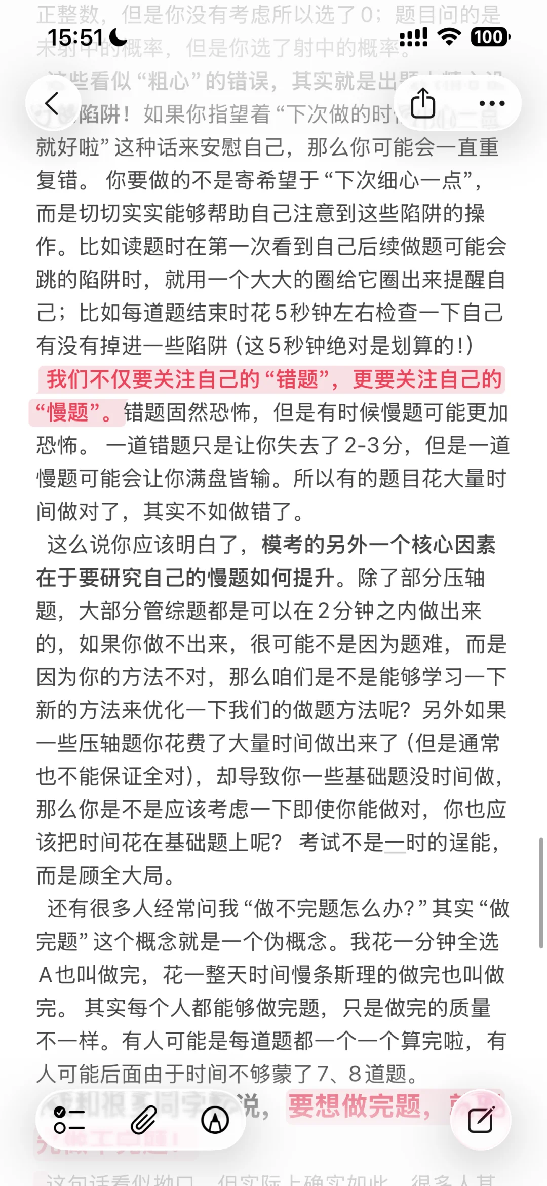 找到问题 → 制定对策 → 修正方法 → 下次进步,这才是模考真正的价值。