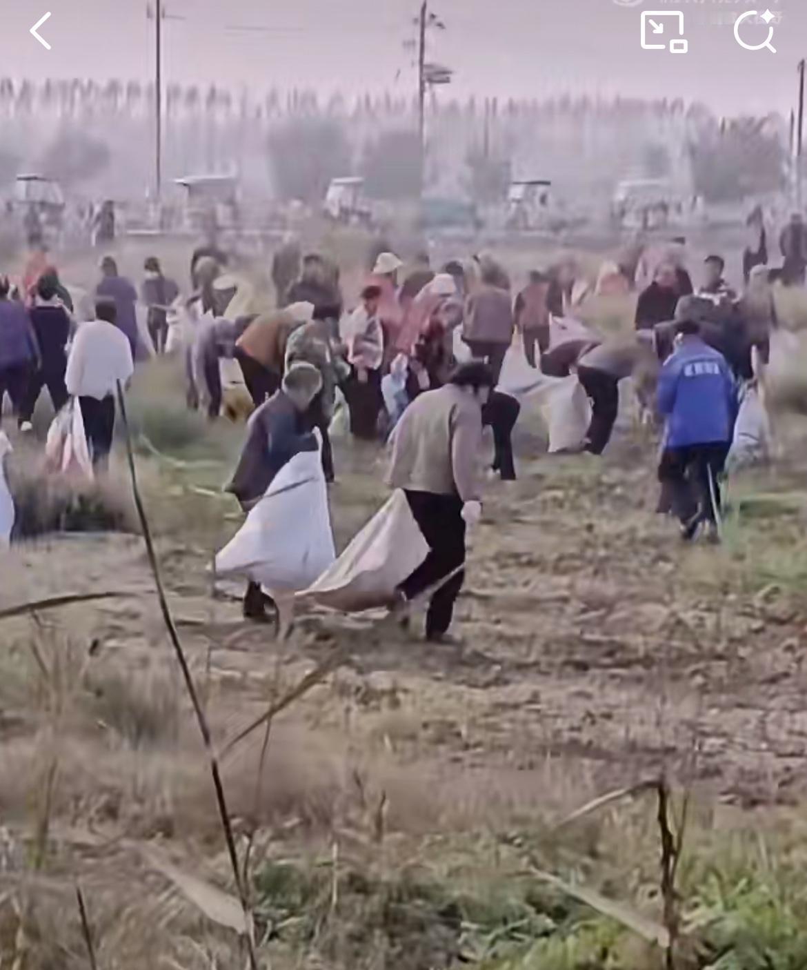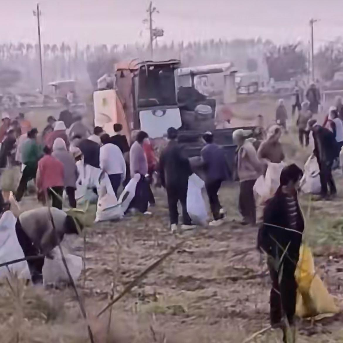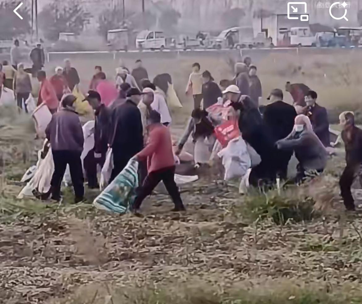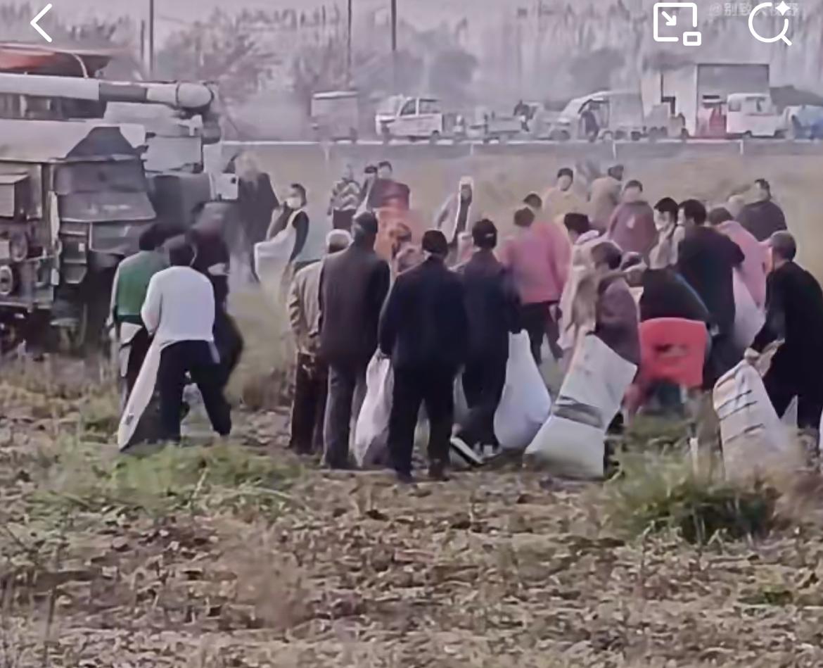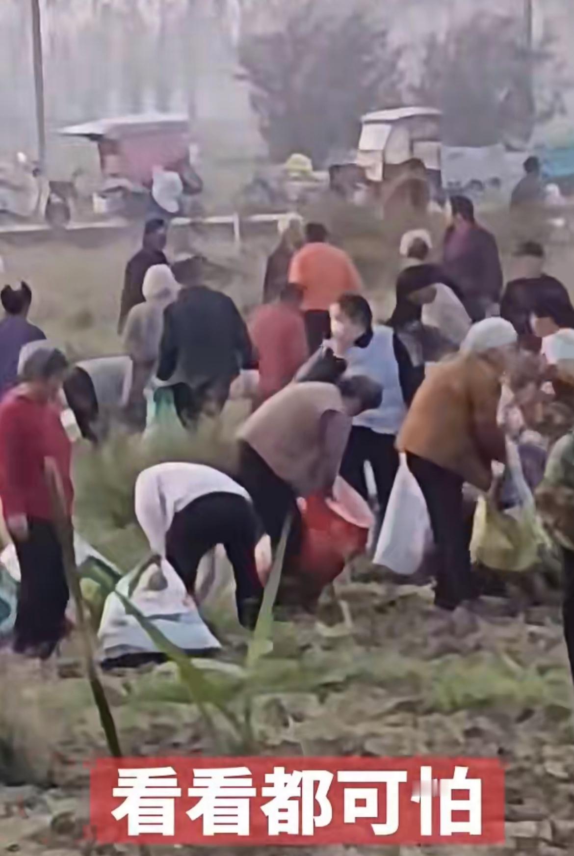 收割机下捡漏的农村老头老太,个个都不要命了。看图片应该是收花生,收割机准备刨地收割,目测一下至少有50个农村老头老太拿着蛇皮袋,围着收割机旁边捡花生,弄的收割机都不敢作业,有一个黑衣男子,估计是老板冲过去想把老头老太的袋子给没收。就这样种地,有多少都得赔进去,太难了。卖东西的老奶奶 拾破烂老人