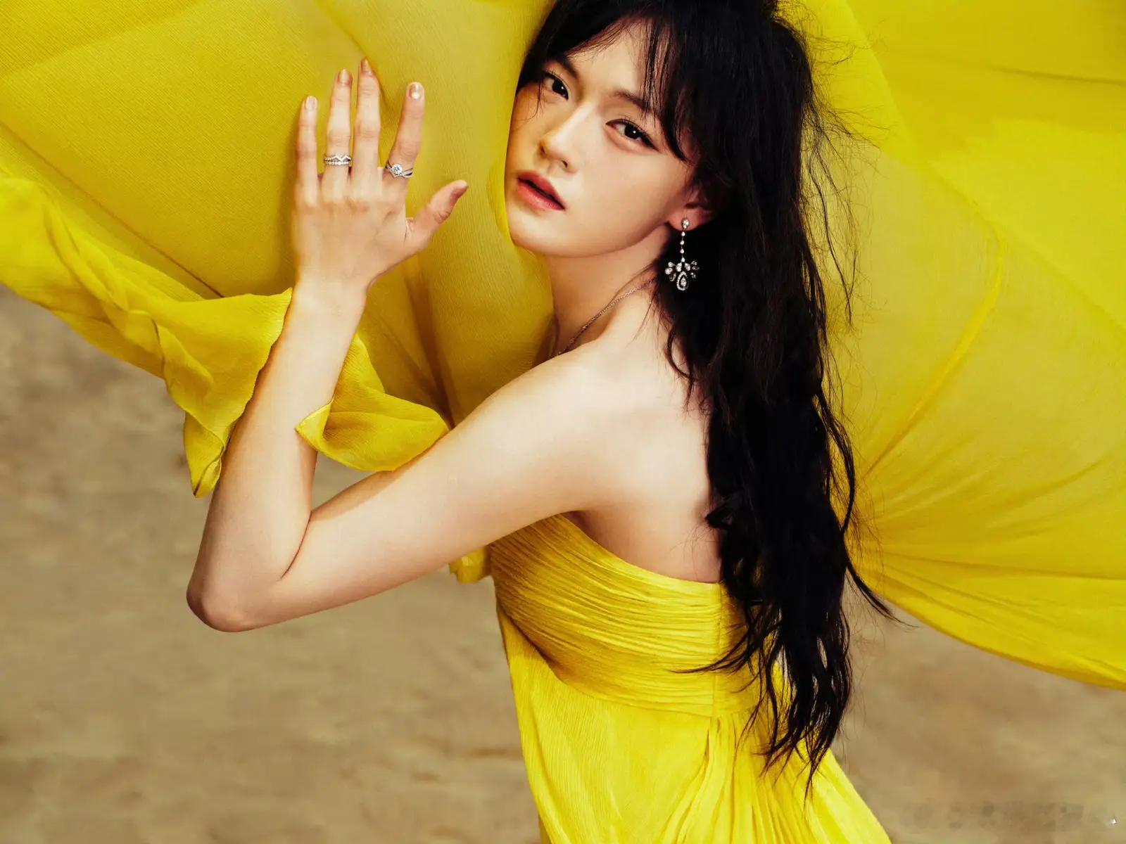 近日,文淇的一组盛典造型释出。图中,文淇一身明黄色抹胸纱裙,发丝飘逸,眼神灵动。