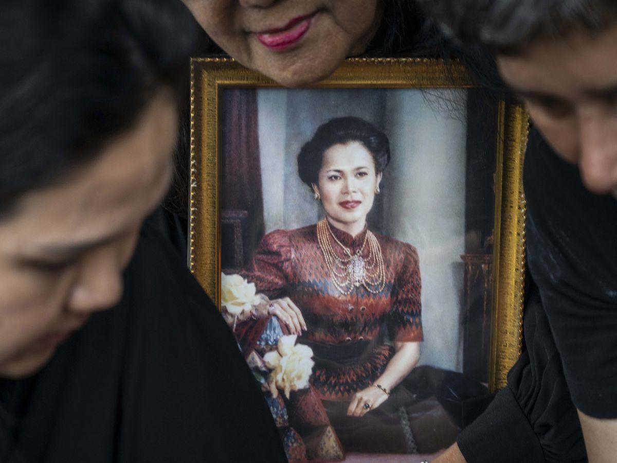 泰国民众集体在街头抱着前王后的照片哭泣。这位当年亚洲最美王后诗丽吉,上周五在曼谷