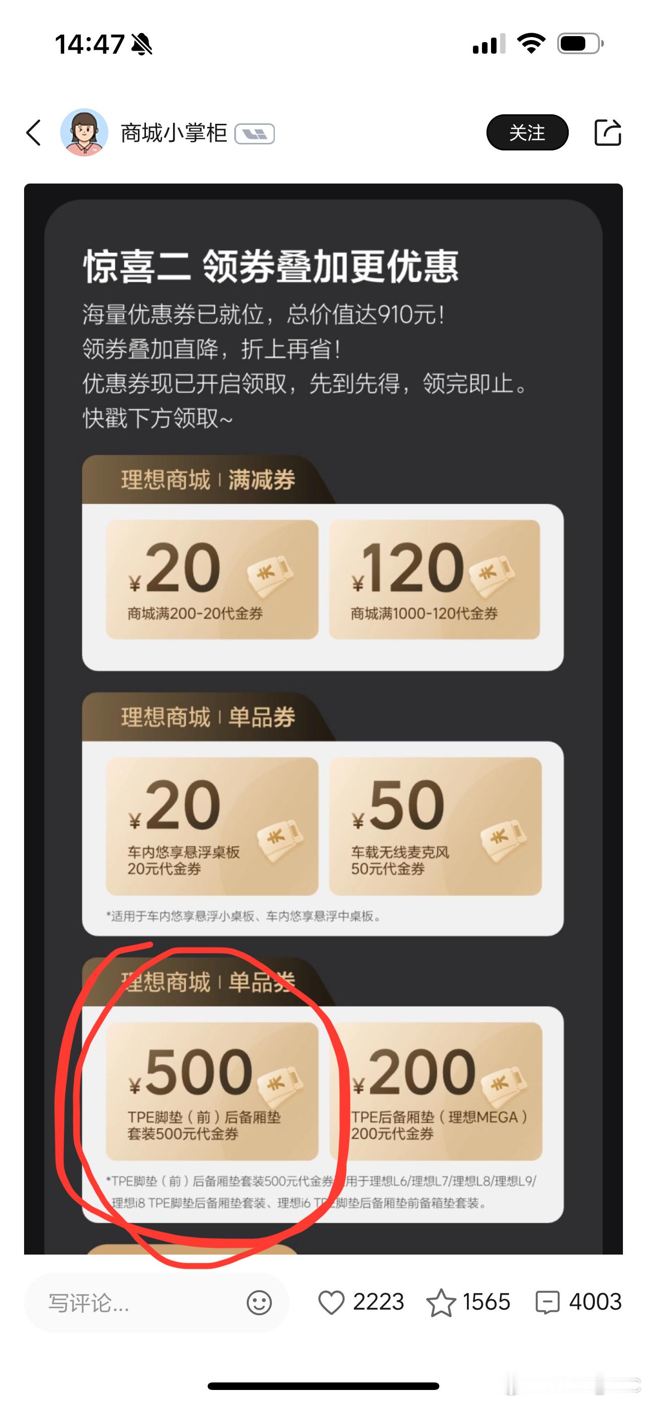 买脚垫找不到优惠券的可以看看这里[柯基]商城的双十一活动,点进去就看到了理想i6