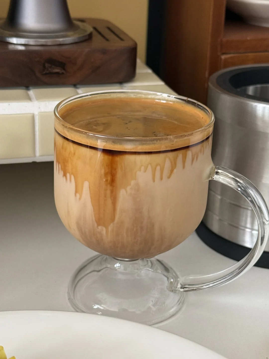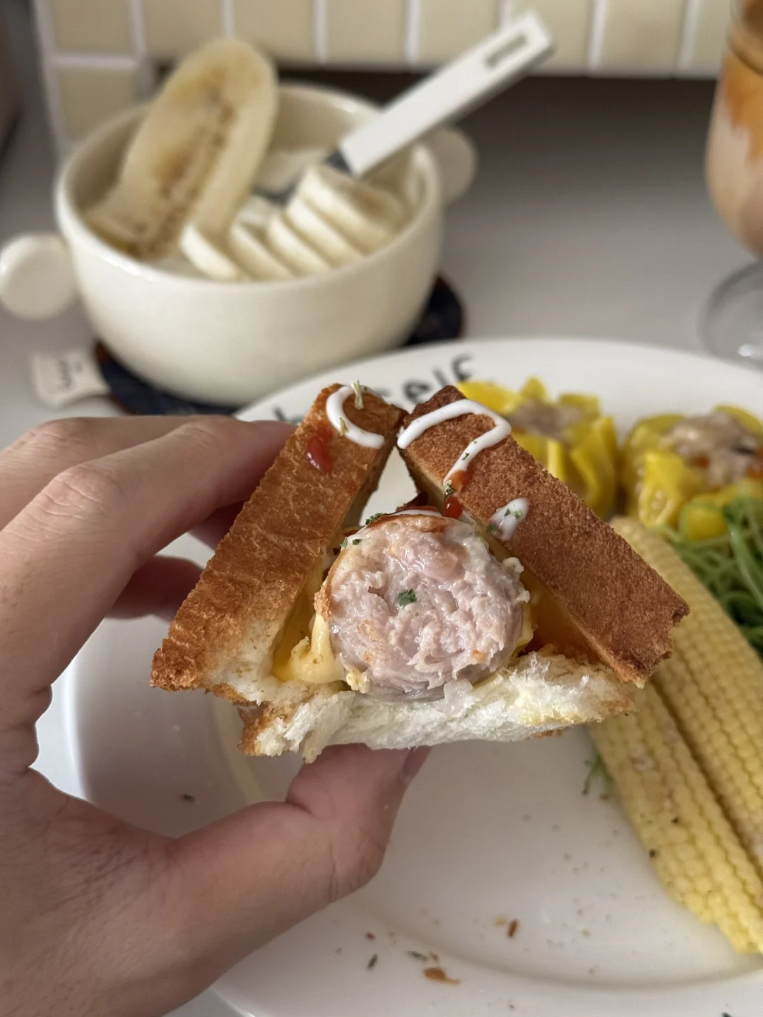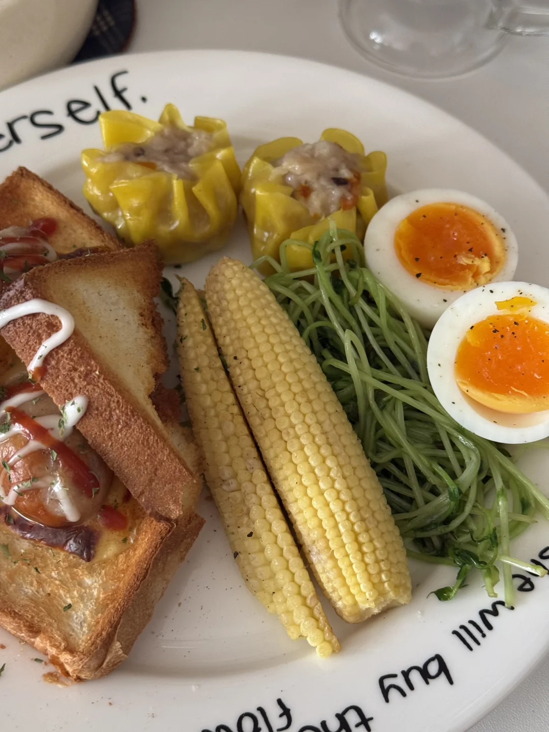 𝑴𝒐𝒓𝒏𝒊𝒏𝒈⛅️ 今天是中西结合 很搭[得意R] - 吐司烤得酥脆, 夹着爆汁香肠和融化的芝士🧀 一口下去层次绝了! - 这个虫草花烧卖也挺好吃的 口感是带一点Q弹的🥢 感觉像是加了鸡汤 很鲜 - 用燕麦奶做的dirty还挺好喝的[赞R]