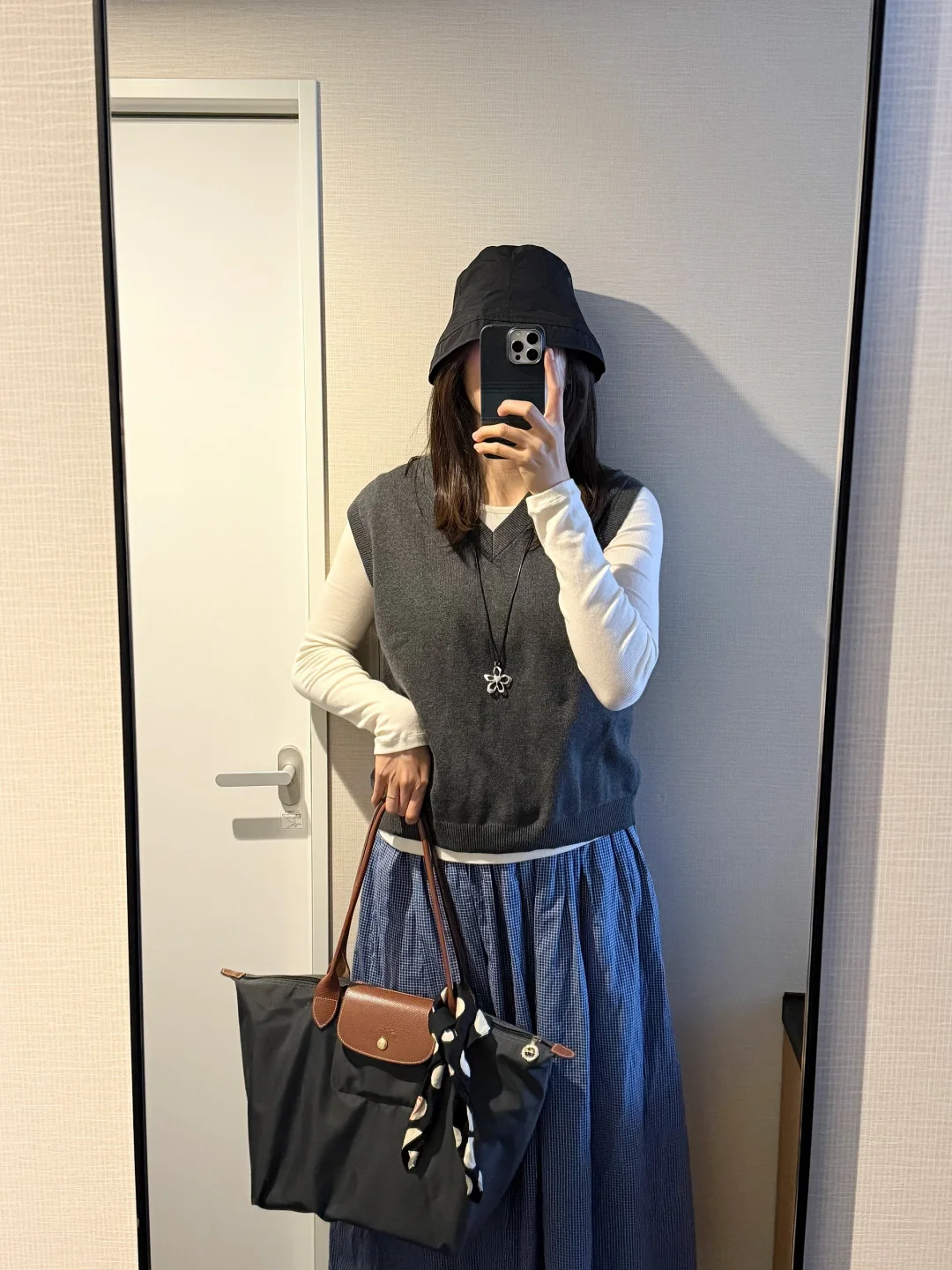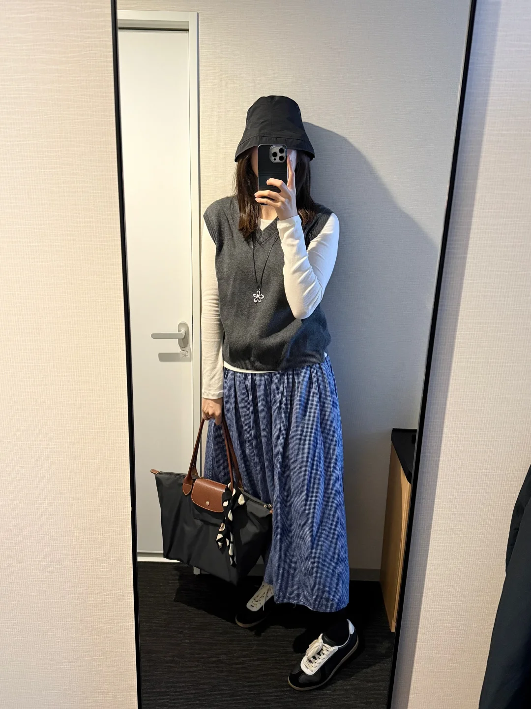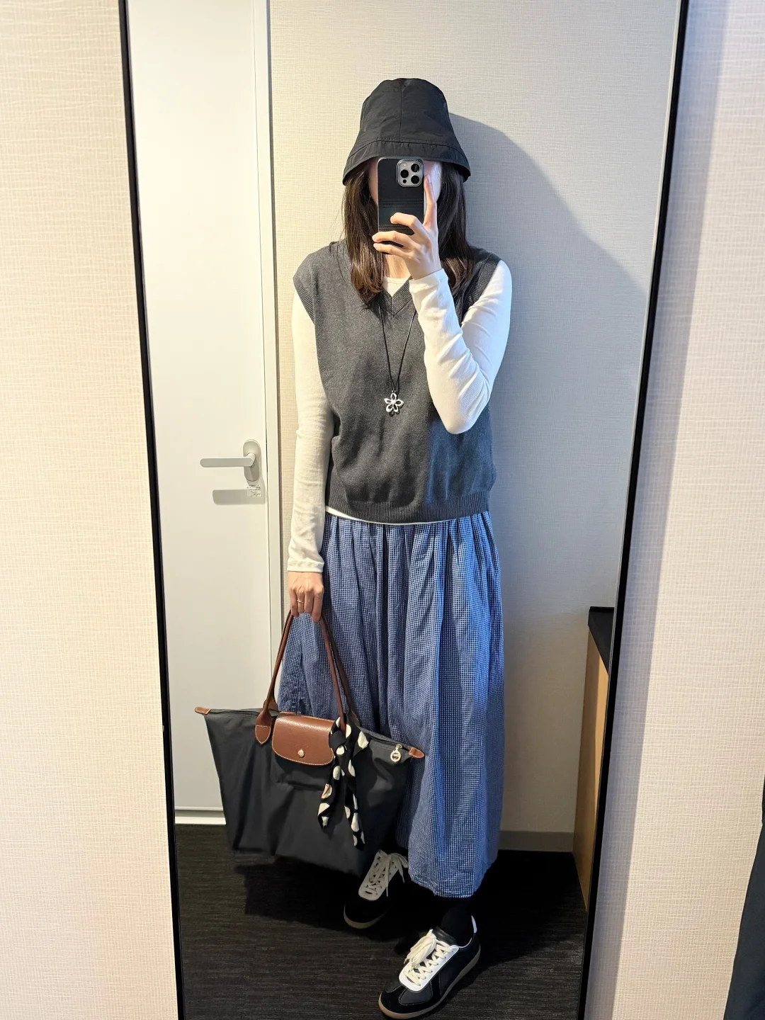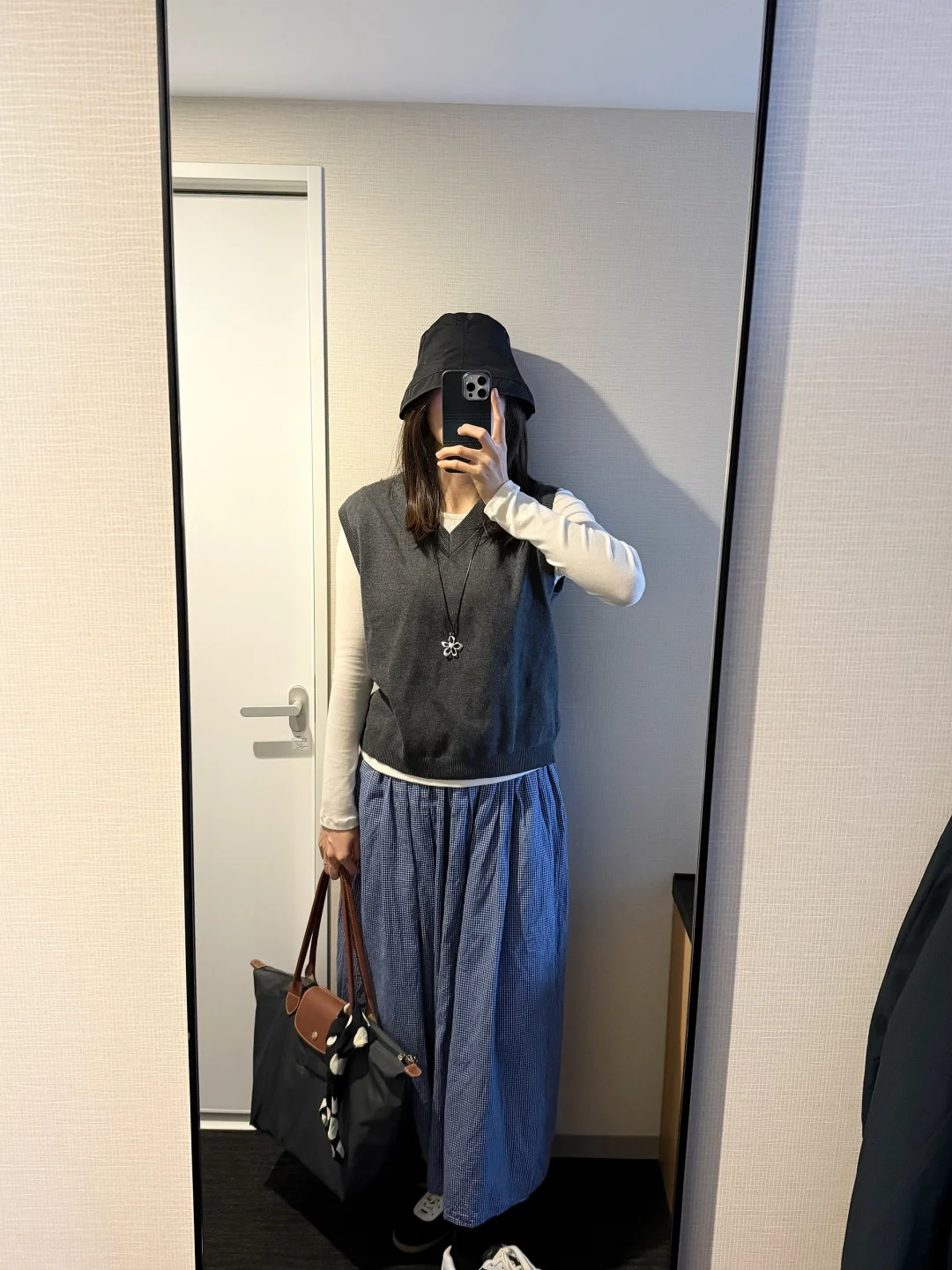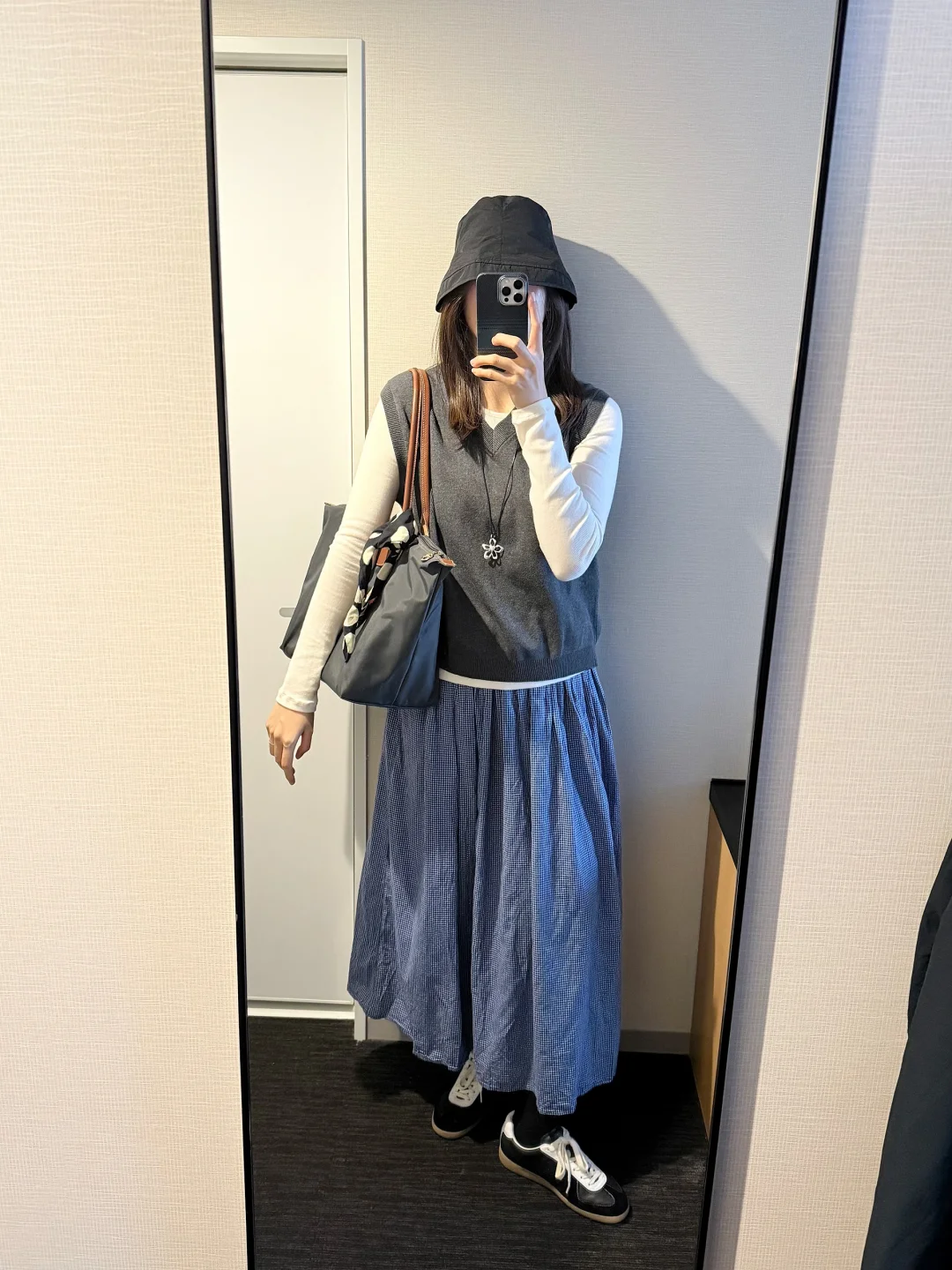 一条蓝裙走东京 真的没带太多衣服 背心套打底 在10多度的东京 也觉得热 保暖打底衣太暖了吧 出行 依然是简单主义者 这套在日本真的时尚中的朴素 但真的很喜欢! 产后暴走一万七 太好逛!