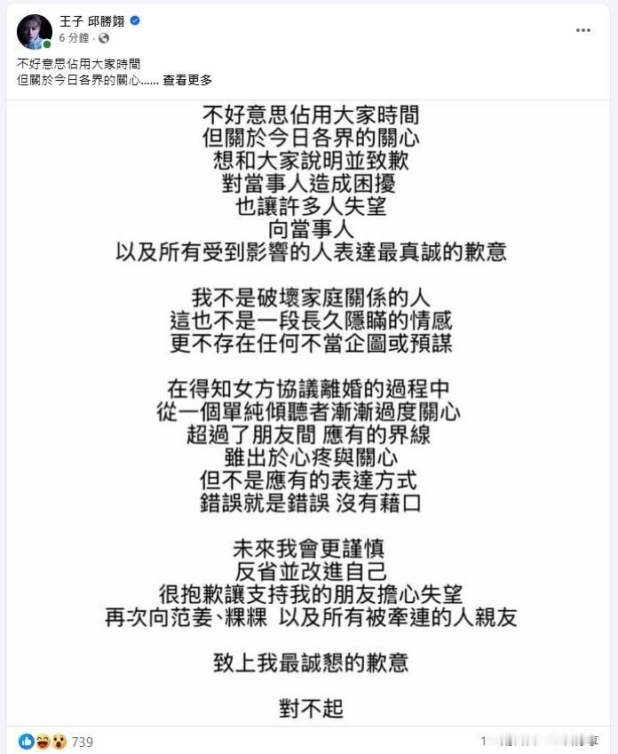 王子(邱胜翊)发文道歉后,其经纪公司喜鹊娱乐再发声明⬇️