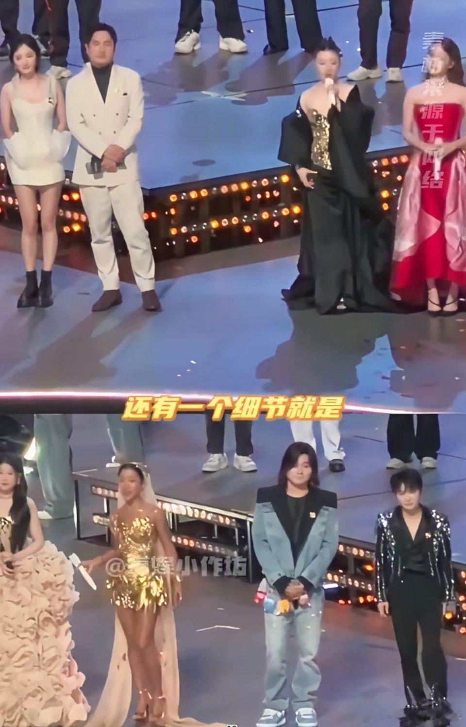 有人说单依纯之后是杨幂唱,故意升key让杨幂为难。但是在画面中可以看到,在单依纯唱完之后,虽然杨幂有抬手的动作,但明显是周深的部分,因为他已经先一步把麦举到嘴边了,说明是安排好的。