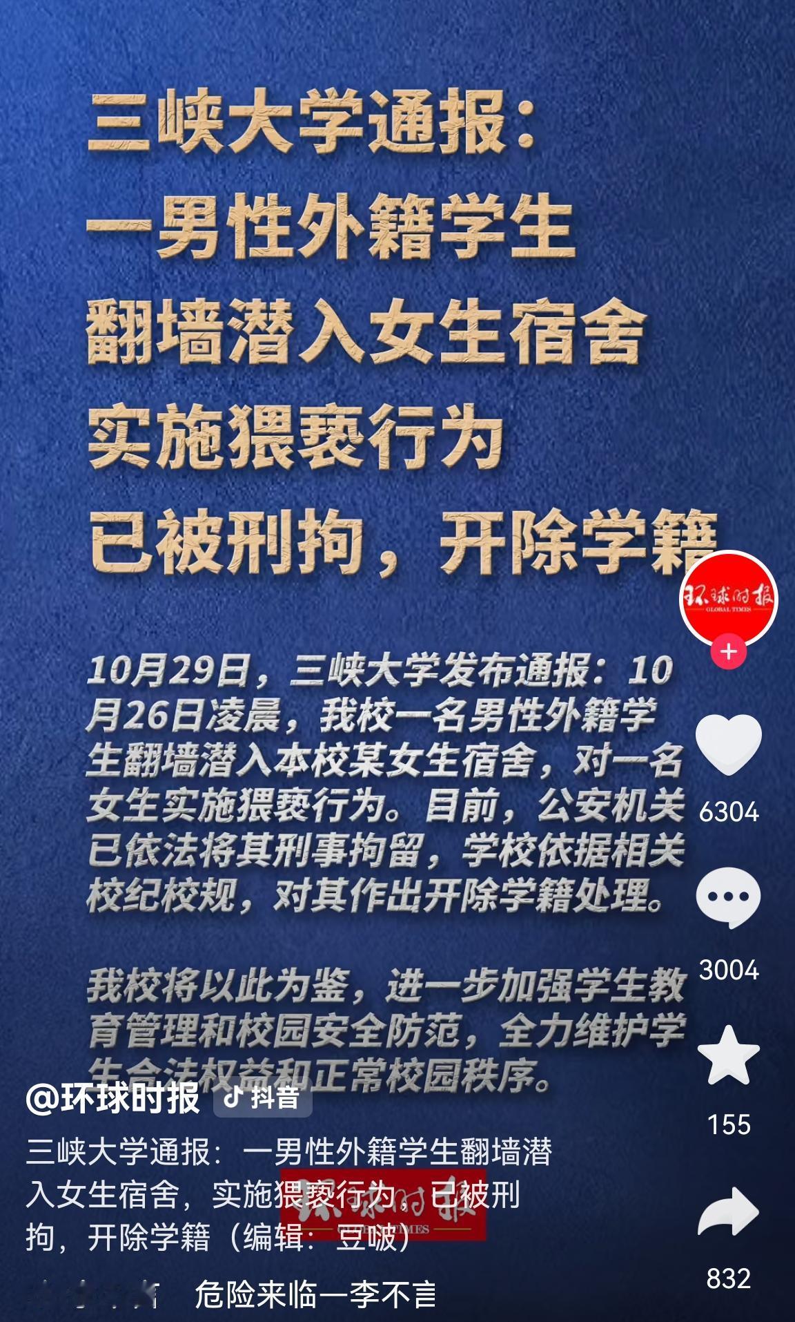留学生闯入女宿舍猥亵学生事件中让人想不到的是: 这所湖北小城市的大学里,竟然有超乎想象的1400多名外籍留学生。 这里需要说明的是,必须要给这次女大学生的勇敢点赞。 如果不是她们受到侵害时深夜奋力反抗大声疾呼,不知道还会发生什么样的事情。 这可是一个深夜从地面翻墙就能轻松爬到二楼的成年外国男性。 因为有网友爆料,前段已经发生多起内衣丢失事件。 从25日发生到今天29日全网讨伐,中间这好几天,肯定有很多故事。 不管如何,校方终于做出开除决定。警方也对犯罪分子刑事拘留。 学校给一楼加上了钢丝网。 再次感谢这些勇敢的女大学生,因为你们的勇敢,推动了一些改变,为大家减少了一些隐患。 同时也给全国视外国留学生为珍宝的大学领导们敲响了警钟。