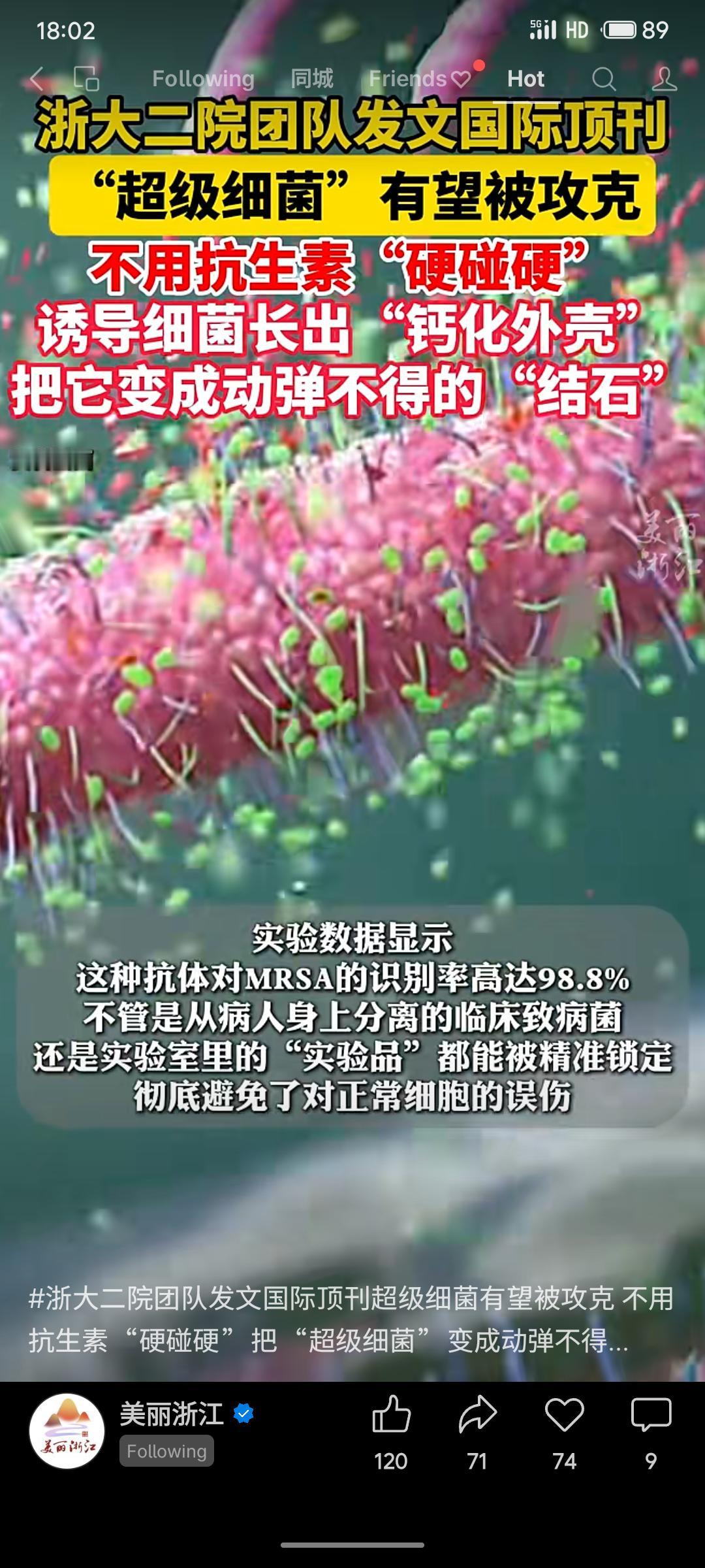 浙大二院团队在《自然·生物技术》发表突破性研究,开创不用抗生素攻克“超级细菌”的新策略。通过纳米级“细菌导弹”精准靶向病菌,诱导其长出“钙化外壳”变成“结石”,同时激活免疫系统彻底清剿,解决了传统抗生素误伤正常细胞的难题。