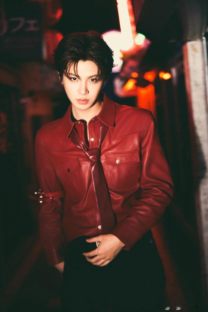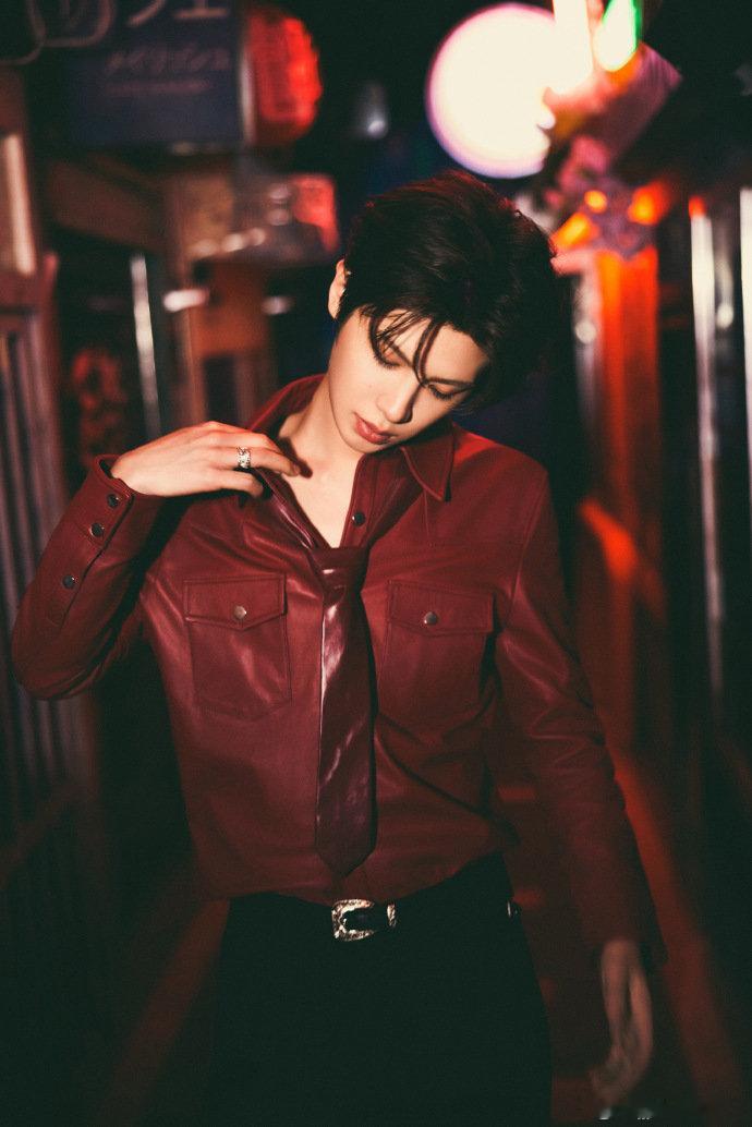 黄明昊复古街道红皮衣造型黄明昊红皮衣咬领带黄明昊复古街道红皮衣造型!红皮衣一穿,谁都不爱,就爱舞台上那个炽热的焦点!黄明昊好帅!火力全开!