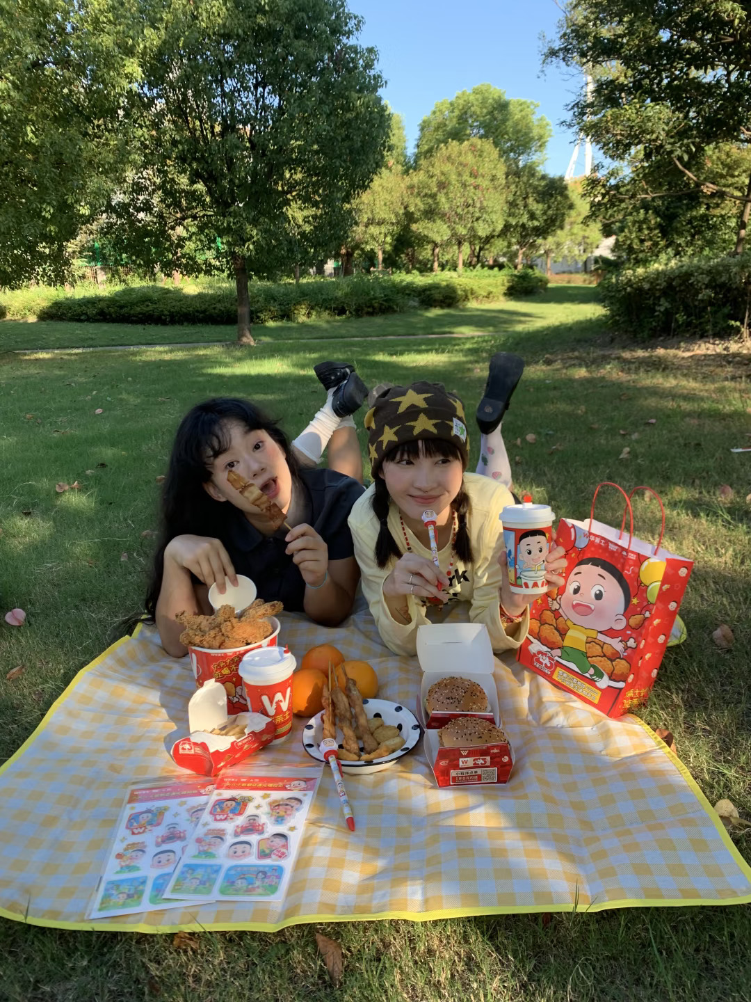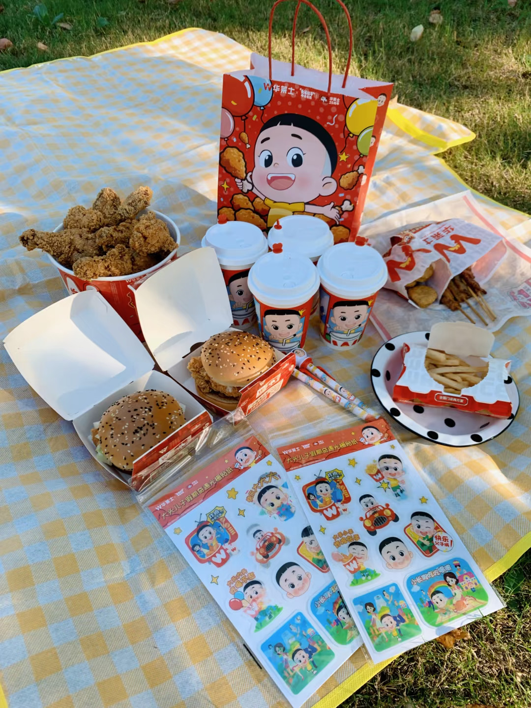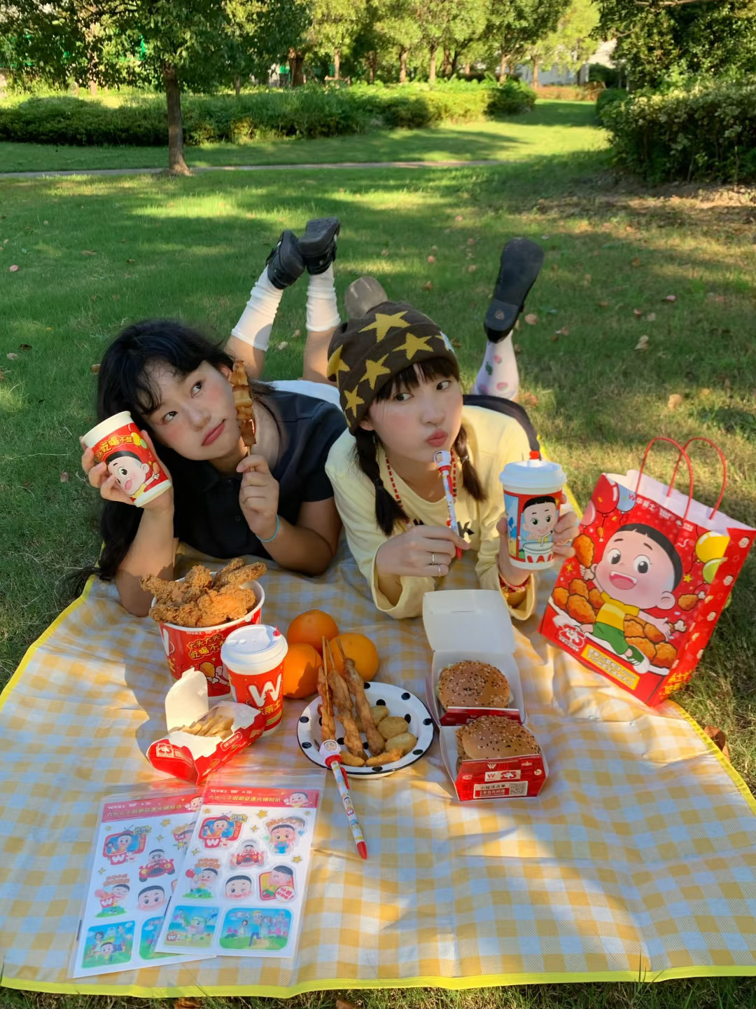 和好朋友一起出来野餐啦🧺!华莱士和大头儿子都联名了!9.24-10.09有大头儿子联名套餐~于是想到了一些可爱有趣的拍照姿势一起拍了一组大头照!太可爱啦😍 10.1购买幸福大头亲子餐、大头爱炸鸡能量桶还送光栅贴纸,还有转转笔~ 另外小程序消费满29元,送大头儿子假期奇遇气球棒一个!!优惠又多,周边又好玩,大家快冲! 大头儿子真是我童年的回忆,小时候就等着饭点看大头儿子!大手牵小手太有爱了!