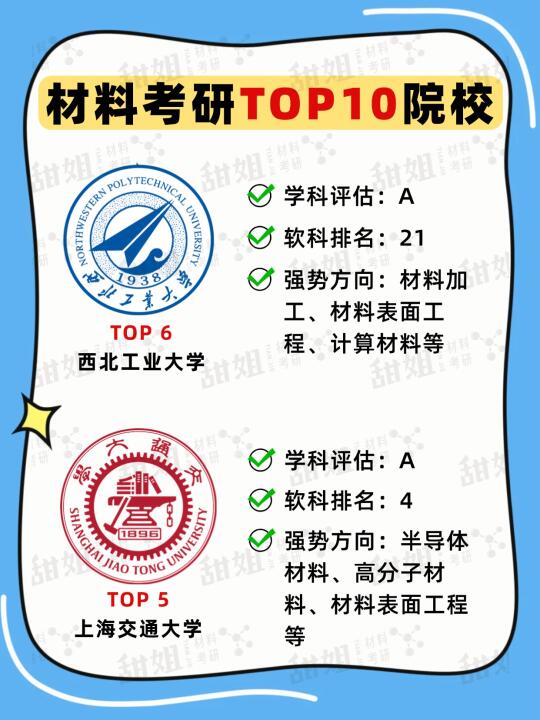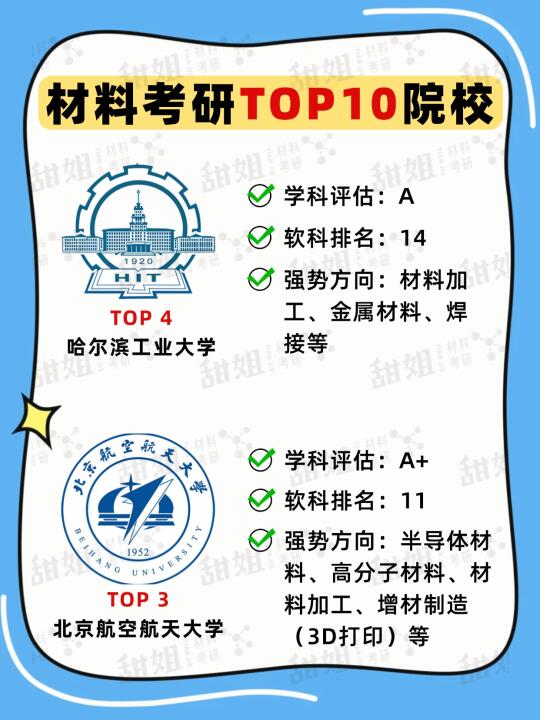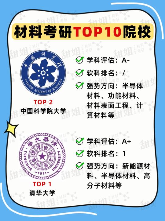 今天给大家介绍一下材料专业TOP10强校,以及他们的强势方向,有你的目标院校吗?快来看看! 材料考研 材料专业 26考研 考研 材料 大学 高校 院校推荐 考研择校