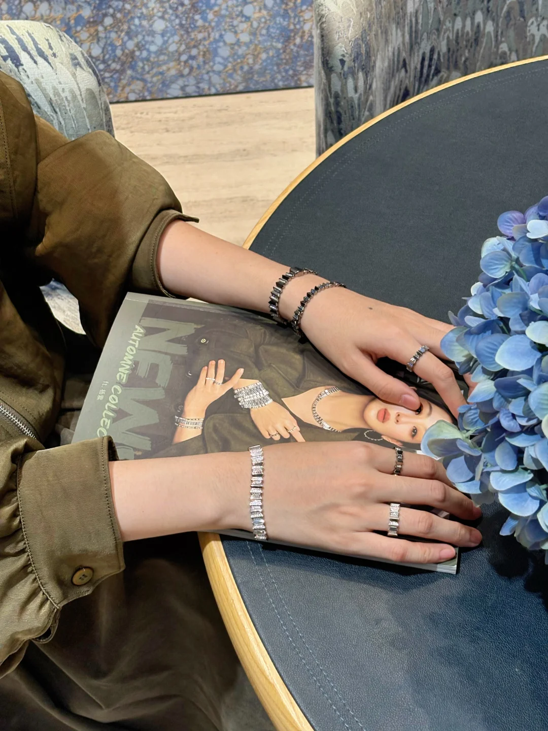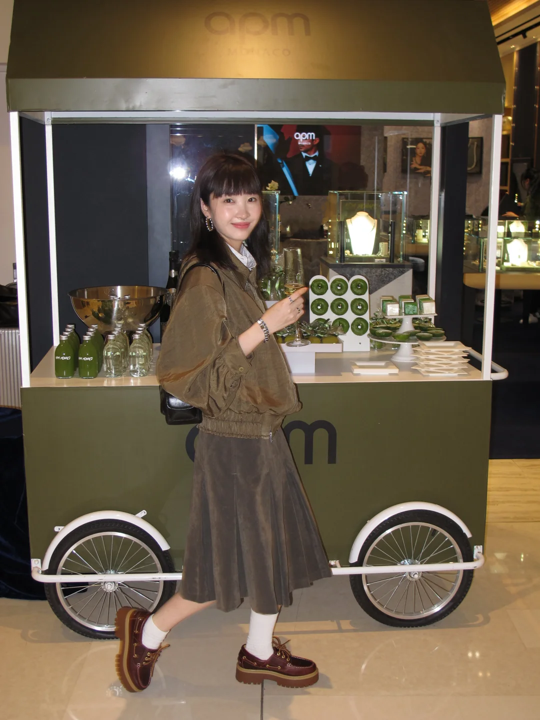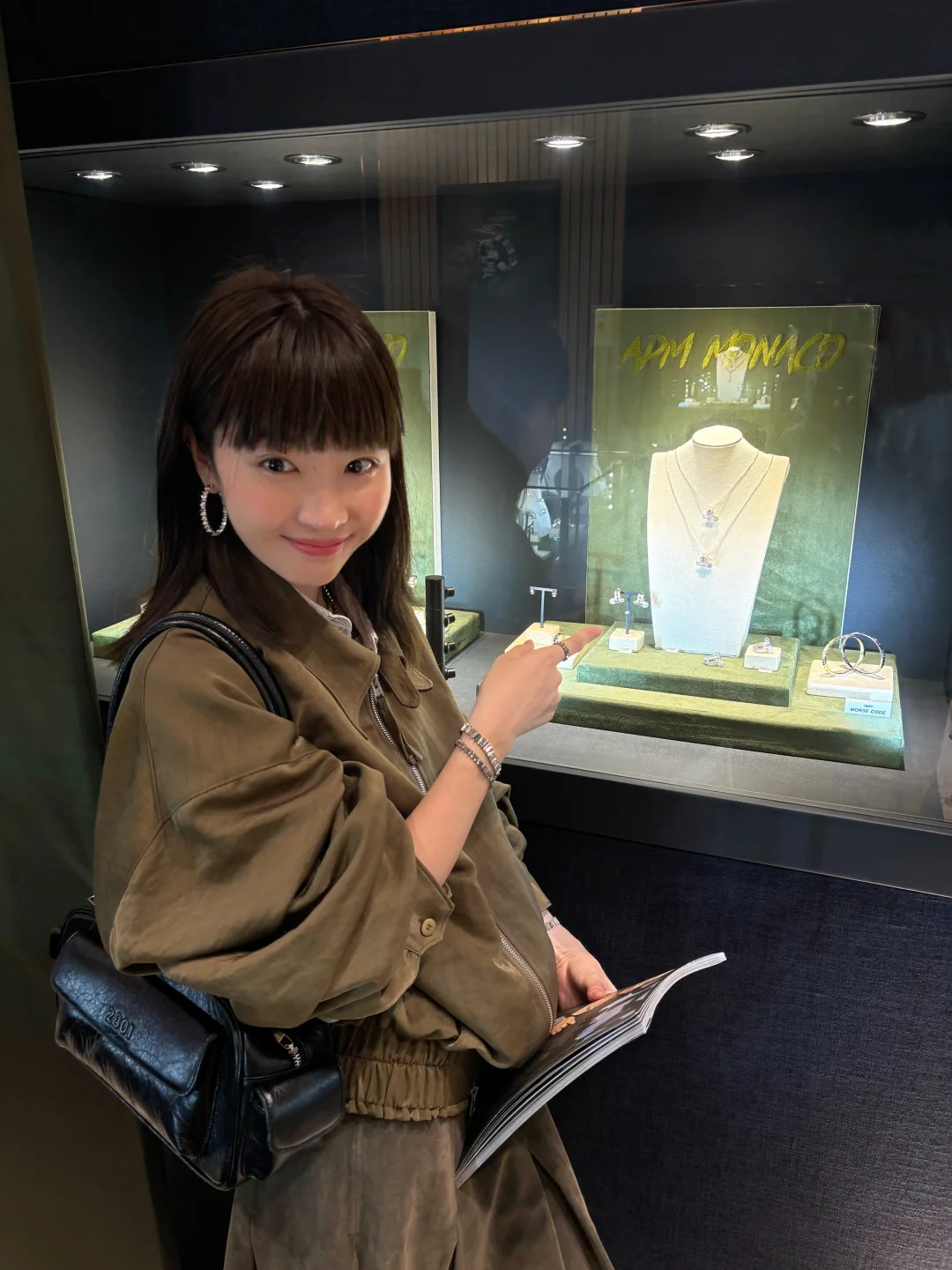 今天和朋友苏州半日游 一下火车就来到了苏州中心的apm 店里的手链项链和戒指都好闪🪩太漂亮了 每个都好特别!带上了2025新款的AUTOMNE系列 感觉整个人气质都不一样了! 店里也是我喜欢的墨绿色 高级的绿 也是很出片!还有小餐车也很好拍 喜欢餐车的小饼干哈哈哈好吃好逛!
