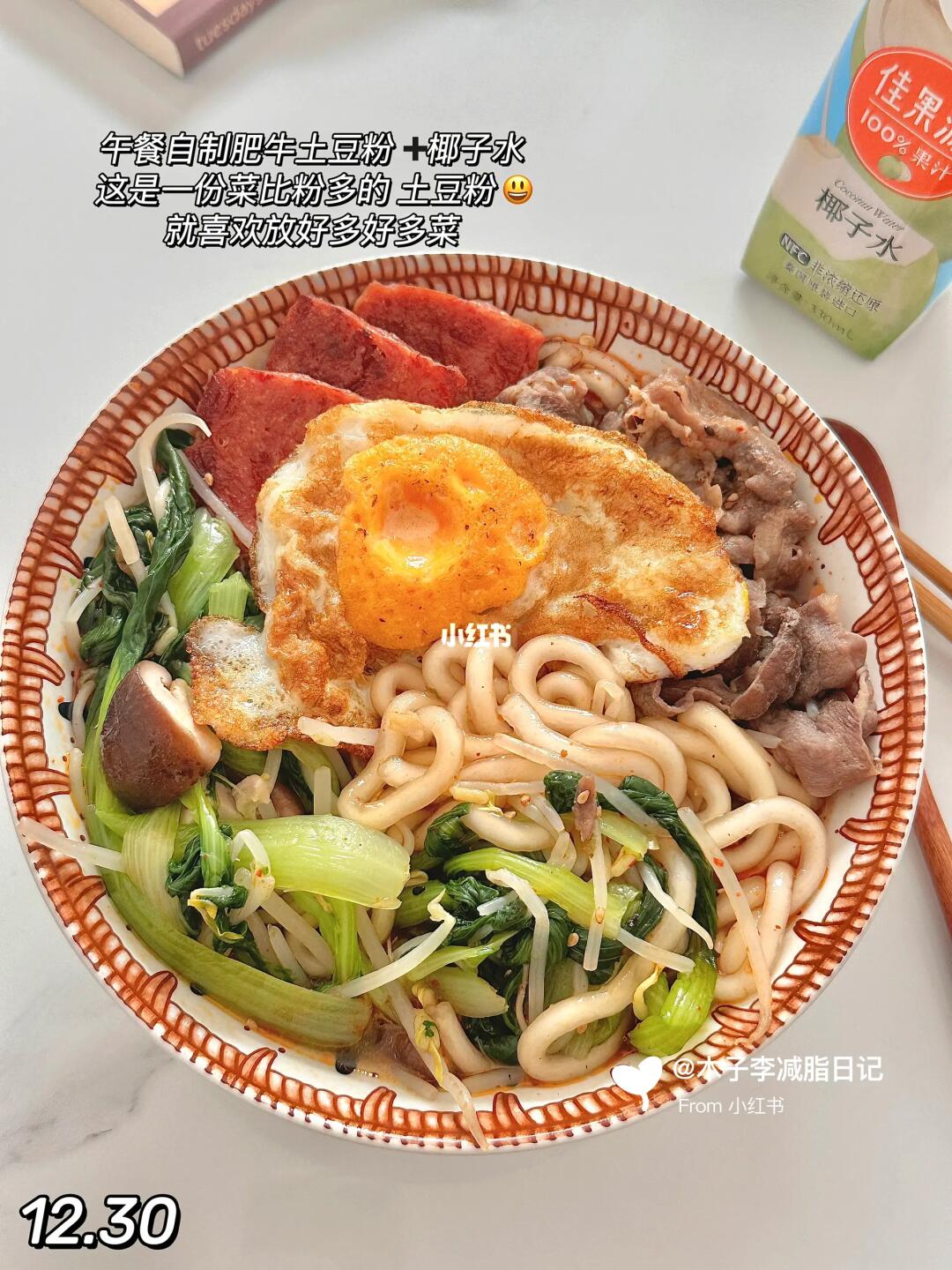 ●原体重:120斤 | 现重:90斤 | 已↓30 - 🥣早:黑芝麻碱水 滑蛋 西梅 冰拿铁 肉肠 🥣午:肥牛土豆粉 椰子水 🥣晚:家常菜 喝水2000ml 🏋️运动:🈚 - 💭咖啡星人秋天也离不开冰咖啡☕太喜欢我这紫呼呼的显眼杯啦,400ml的容量外出带敲方便的,保温保冷都好好,放了6小时的冰块都没化✌🏻️颜值和实力在线的杯子太爱啦! 💭中午自己做了土豆粉吃,加了好多料的那种!没吃完,就好饱了已经!