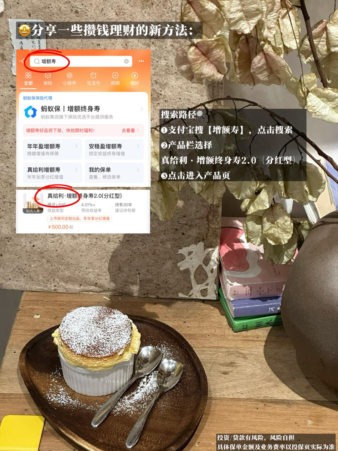 给大家科普路径:上支付宝搜【增额寿】,点击搜索-产品栏选择真给利·增额终身寿2.0(分红型),点击进入。但要提醒大家,投资有风险,理财需谨慎,做任何投资决策都要保持理性,仔细阅读相关报告和说明,投资/贷款有风险,风险自担