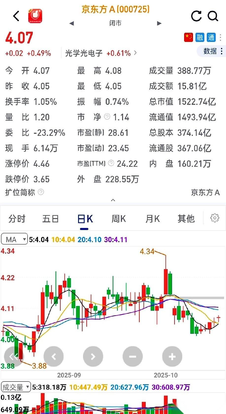 我真庆幸,三年前亏了2000多块,把京东方给清了。 不然今天看到它,我估计能气到心梗。 三年了,整整三年,地球都快转了三圈了,它还在4块钱那趴着,动都不带动一下。 你说它不行吧,它半年营收一千个亿,利润增长40%多。这业绩,放隔壁任何一个带“科技”俩字的,不得给你涨出个珠穆朗玛峰来? 到它这儿呢?就好像把一块金子扔进了深海,连个水花都听不见。 最邪门的是什么? 是十几年前它亏得底裤都快没了的时候,股价居然上过12块!现在赚钱了,赚大钱了,反而成了扶不起的阿斗,焊死在了地板上。 我真的,由衷佩服那些还拿着它的人。 你们是怎么做到看着外面锣鼓喧天,鞭炮齐鸣,自己家门口却连只过年的麻雀都没有的? 这哪里是炒股,这分明是在修仙啊。