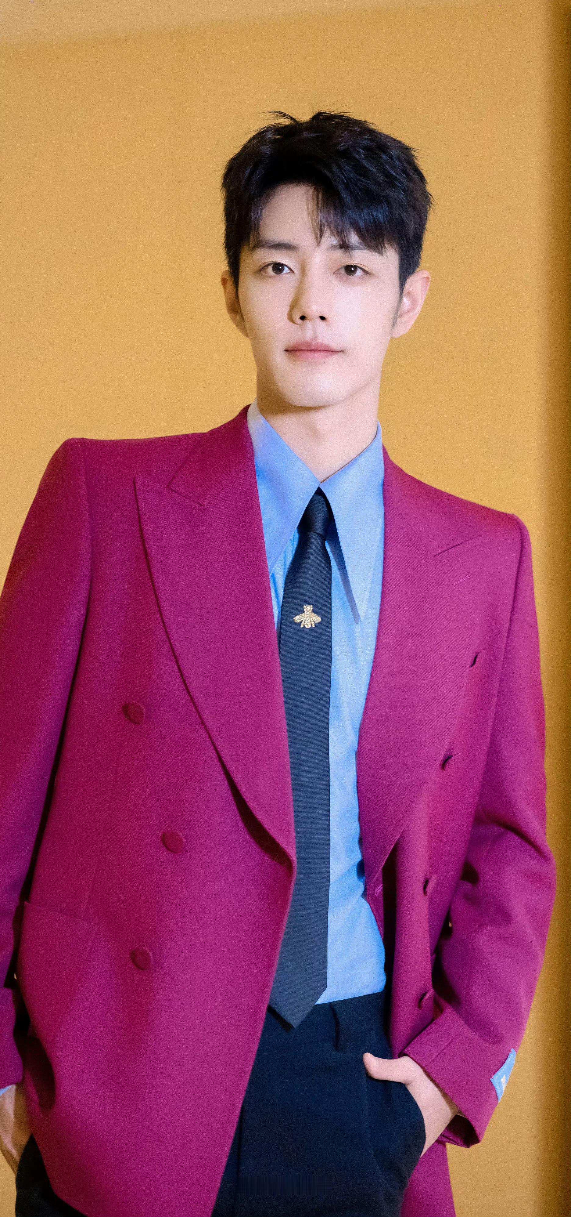 肖战 特别惊艳的火龙果色!肖战这身太好看啦!不愧是行走的衣架子,什么色系都能驾驭