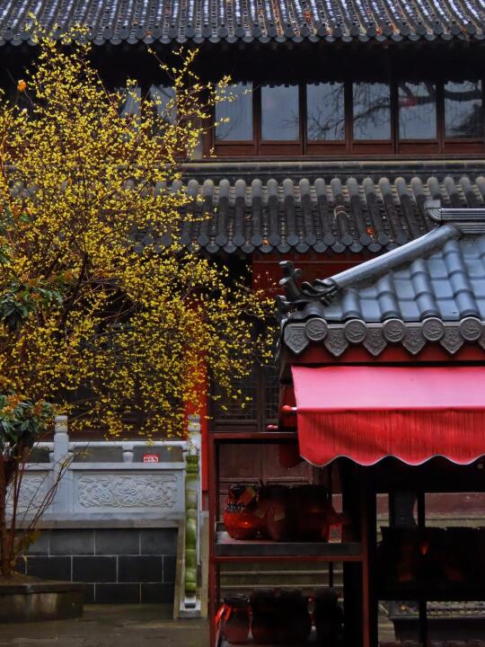 现在寺内的蜡梅已经开了,很快就是盛花期