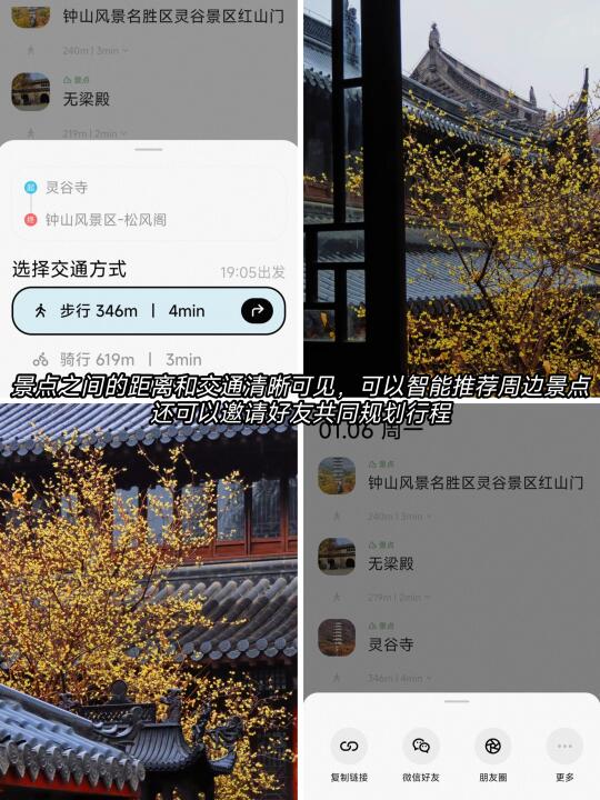 出门旅行,我一般会用规划行程,地图形式一目了然,输入想去的地方,各景点之间的距离和交通方式清晰可见,还可以智能推荐周边的景点