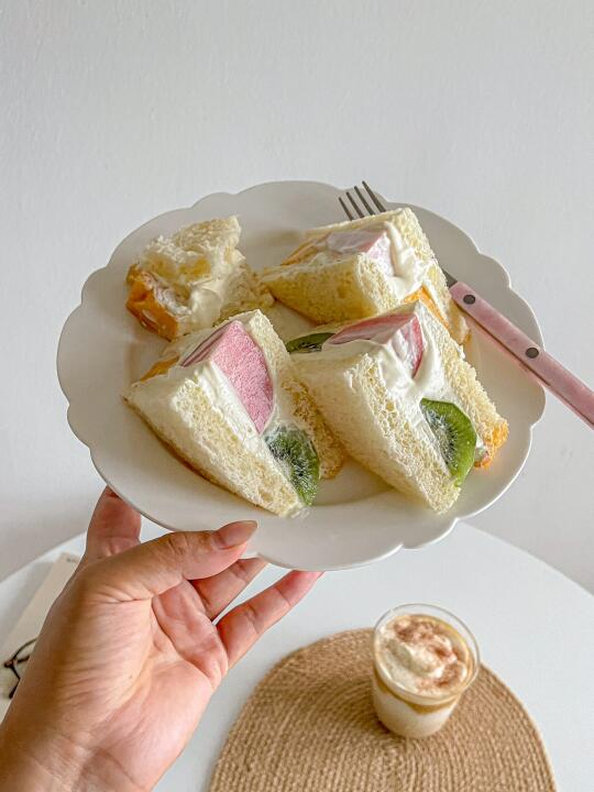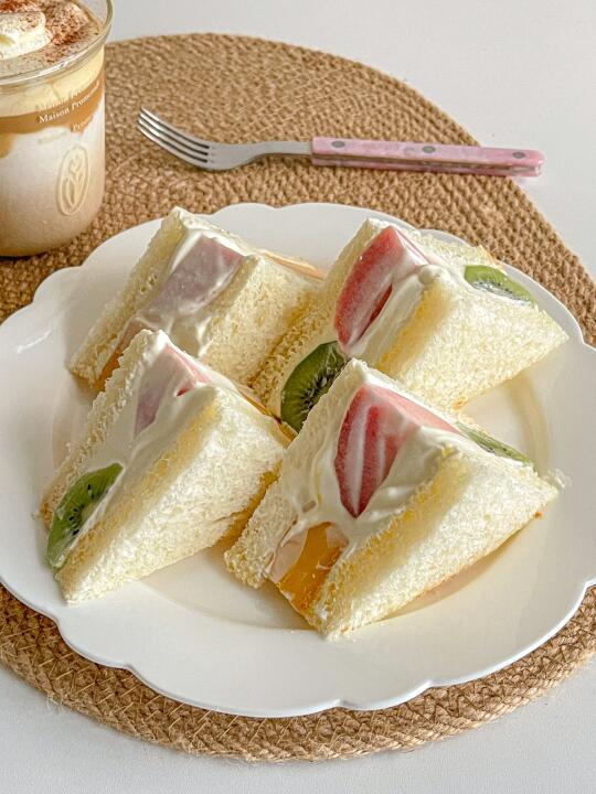 元气早餐🥝奶油水果三明治🍑维也纳咖啡☕